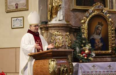Po liturgicznym pozdrowieniu Pasterz Kościoła Kaliskiego przypomniał wiernym o okolicznościach spotkania w murach „Polskiego Nazaretu”:
