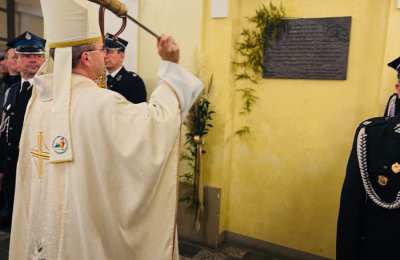 Przed udzieleniem pasterskiego błogosławieństwa biskup kaliski poświęcił pamiątkową tablicę.