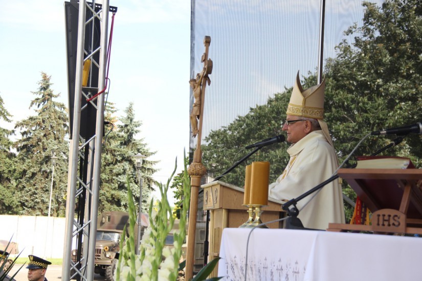 W homilii celebrans nawiązując do historii przebywania legionistów w Szczypiornie zaznaczył, że wspominanie tych wydarzeń ma na celu promowanie patriotyzmu zwłaszcza wśród młodego pokolenia. – Wskazywał na postawę kaliszan, którzy pośpieszyli z solidarną pomocą cierpiącym z głodu, przeziębienia, chłodu i prześladowań legionistom. Biskup odnosząc się do współczesnych czasów przekonywał, że nie można odciąć się od korzeni chrześcijańskich. Przypomniał, że Jan Paweł II przemawiając do gremium przygotowującego traktat Unii Europejskiej w czerwcu 2000 r. mówił o korzeniach chrześcijańskich jako najcenniejszym dziedzictwie, o godności osoby, świętym charakterze życia ludzkiego, współpracy wszystkich dla dobra wspólnego.Podkreślał, że dzisiaj Kościół staje przed wieloma trudnymi wezwaniami, np. w kwestii migracji w całym świecie. – Papież Franciszek będąc na Światowych Dniach Młodzieży powiedział do Polaków, że każdy naród według swojej możliwości ma pomagać migrantom. Nie można nie być wrażliwym na drugiego człowieka. Tego nie uda się przemilczeć. To jest wezwanie dla nas wszystkich – powiedział kaznodzieja. Wskazywał, że kolejnym trudnym problemem są jawiące się małżeństwa jednopłciowe. – Jest to nienormalne. To lobby lansuje różne dewiacje przez co osłabia rodziny. Kościół nigdy tego nie zaakceptuje, bo takie jest prawo Boże. Trzeba to sobie jasno powiedzieć. Stąd tyle jest agresji w kierunku Kościoła – stwierdził hierarcha.