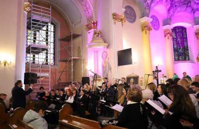 Po Mszy Św. wierni mieli okazje wysłuchać koncertu obu chórów.