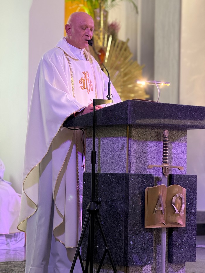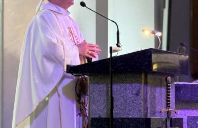 W homilii biskup kaliski wspominał pierwszego proboszcza ks. prał. Czesława Majorka i parafian, którzy podjęli dzieło budowy kościoła: