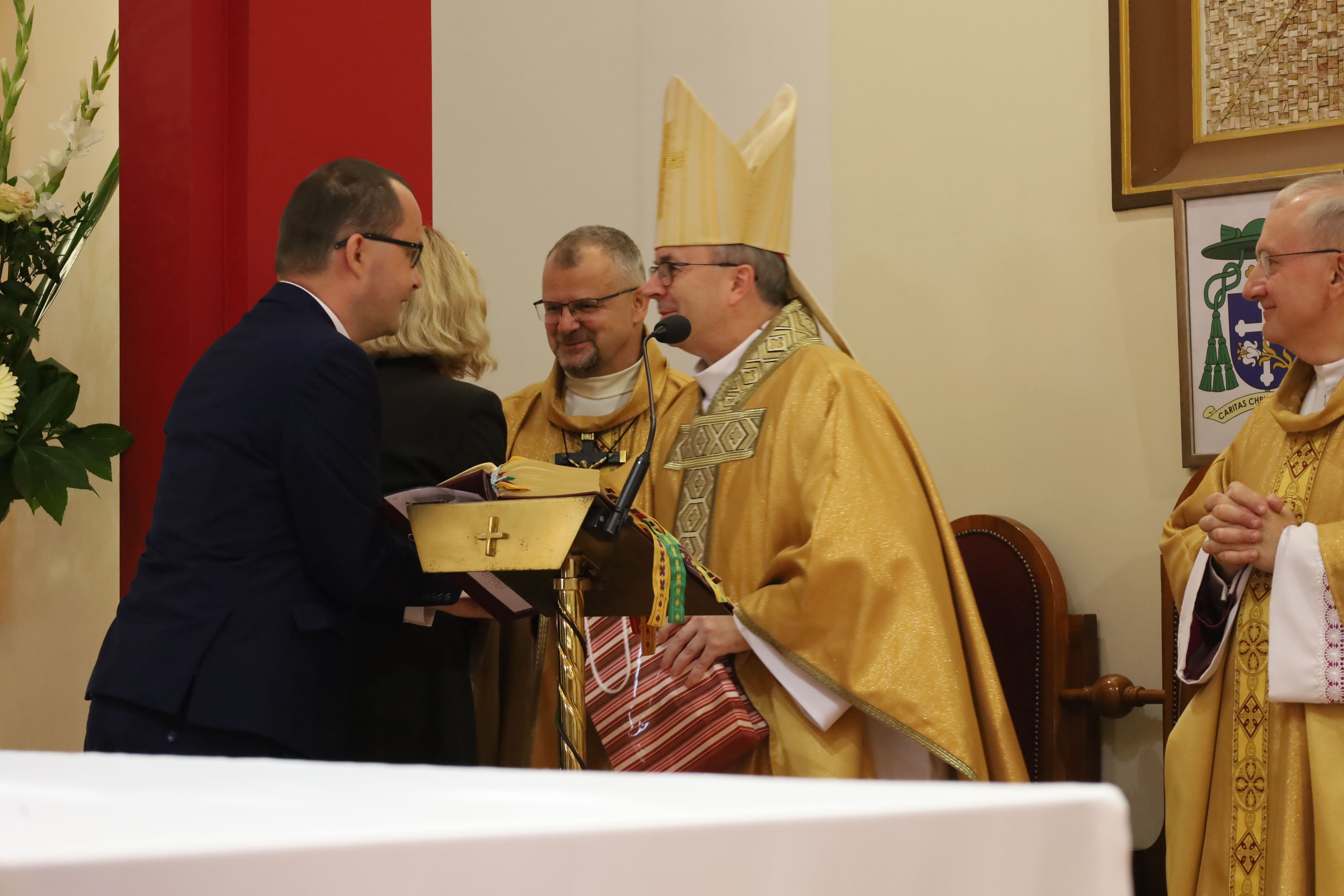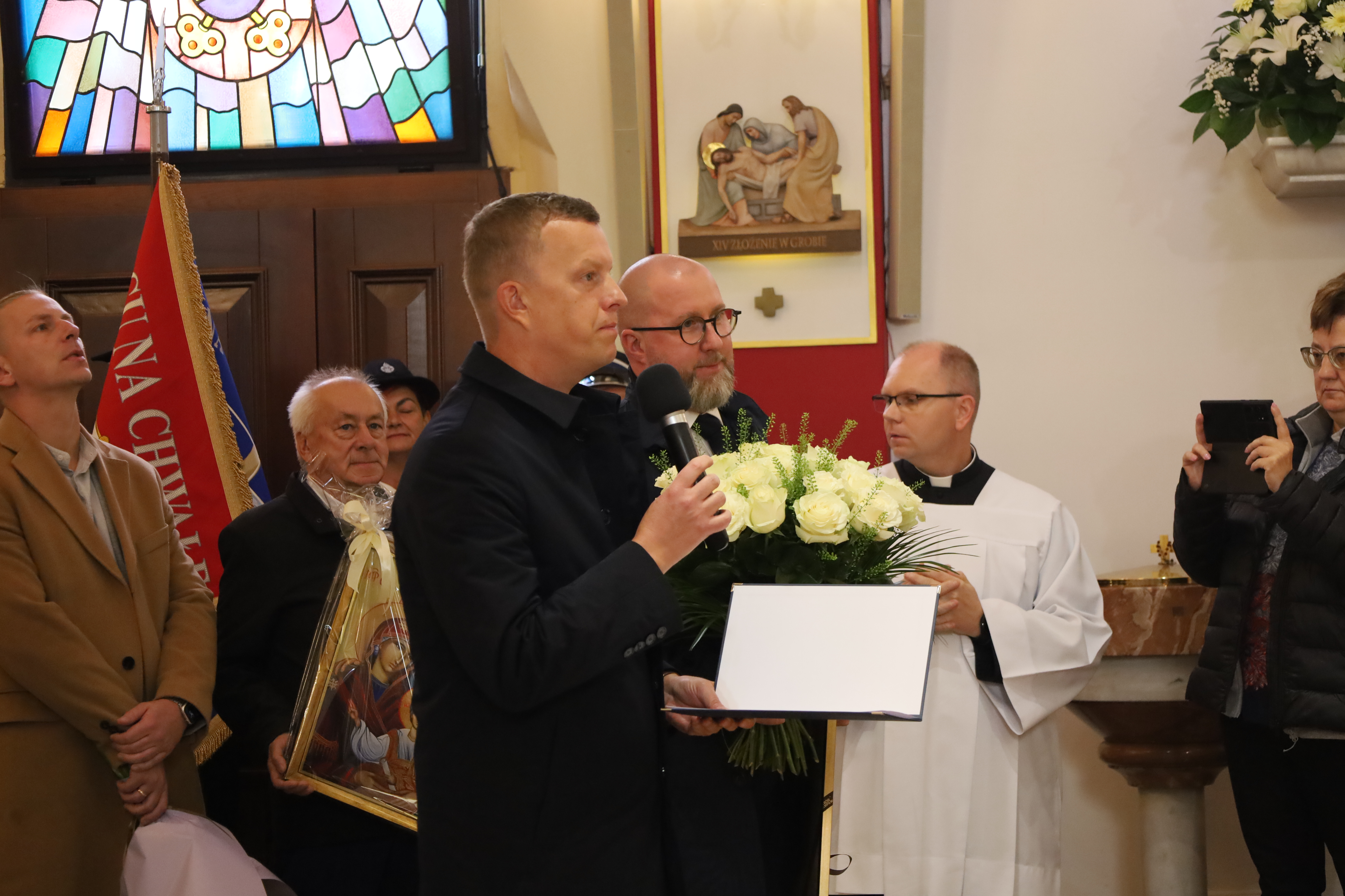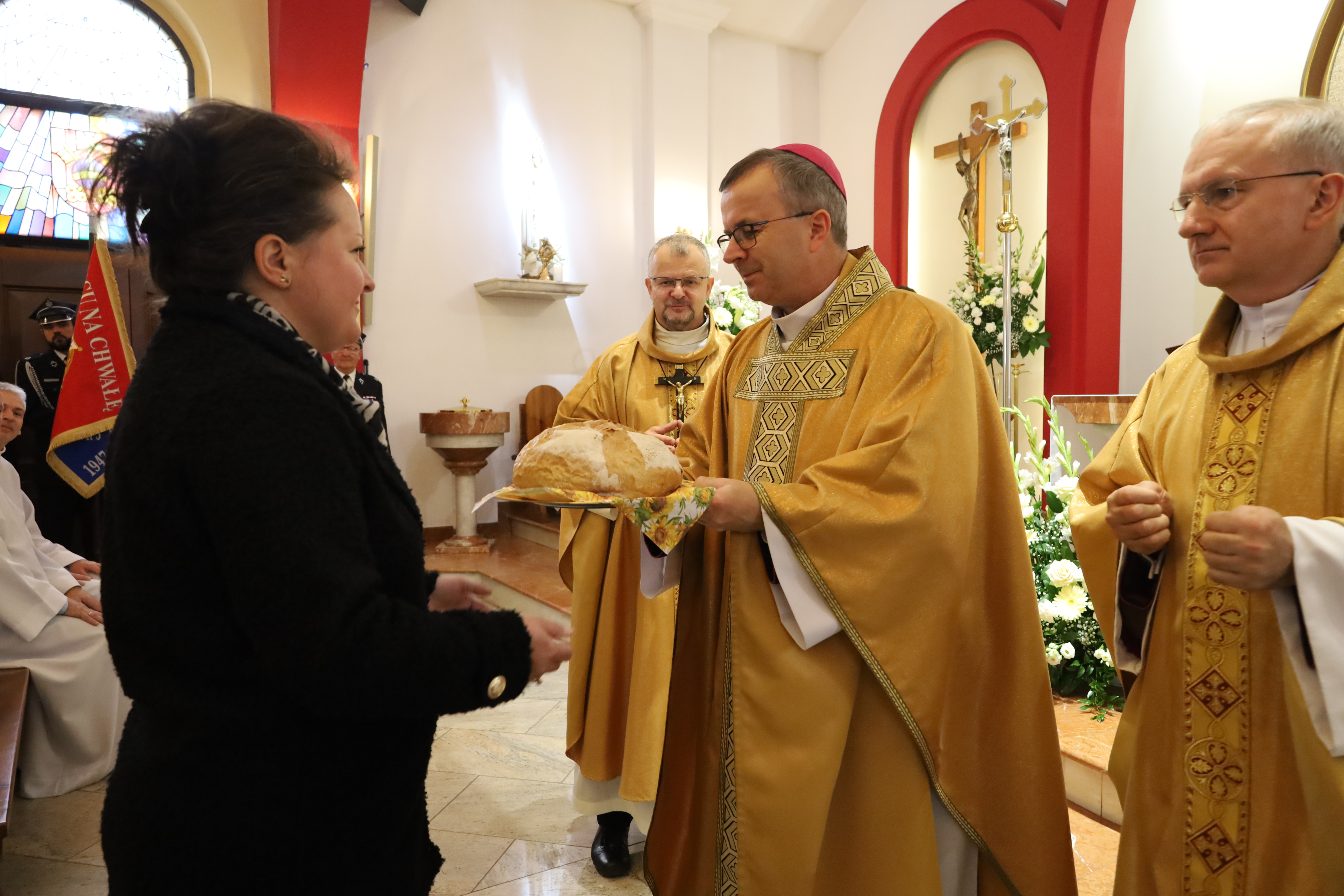 Po uroczystym błogosławieństwie, przedstawiciele wspólnoty parafialnej, Ochotniczej Straży Pożarnej oraz władz miasta, złożyli podziękowania na ręce ordynariusza diecezji oraz proboszcza: