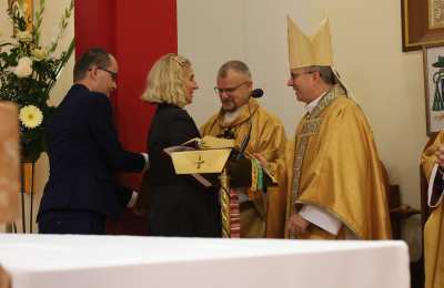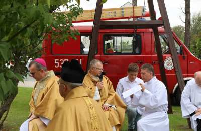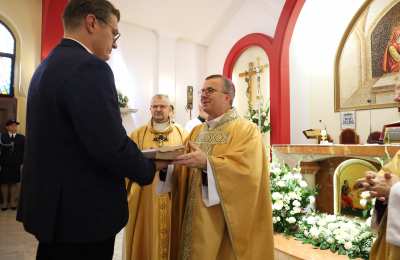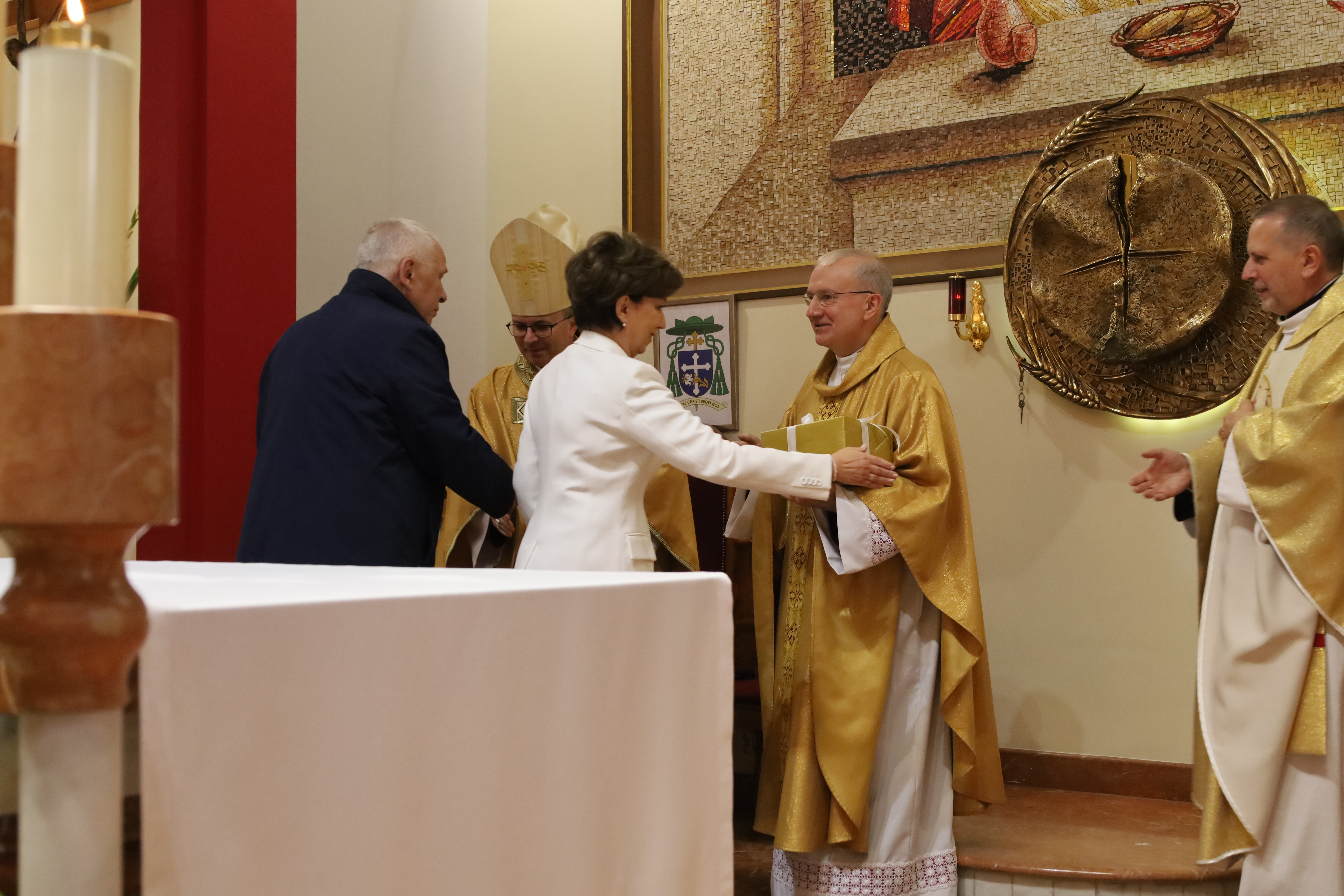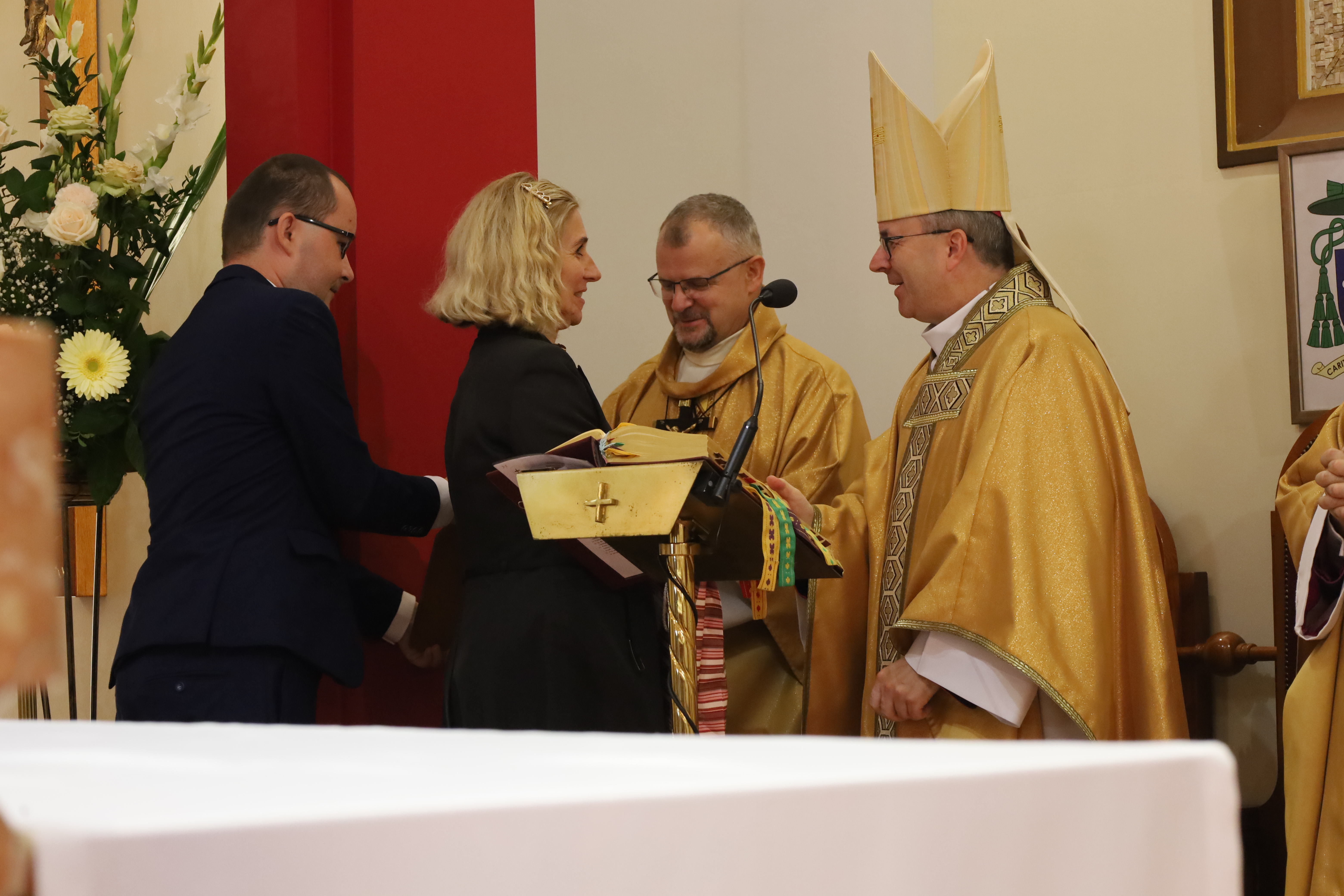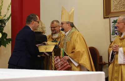 Po uroczystym błogosławieństwie, przedstawiciele wspólnoty parafialnej, Ochotniczej Straży Pożarnej oraz władz miasta, złożyli podziękowania na ręce ordynariusza diecezji oraz proboszcza: