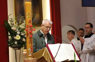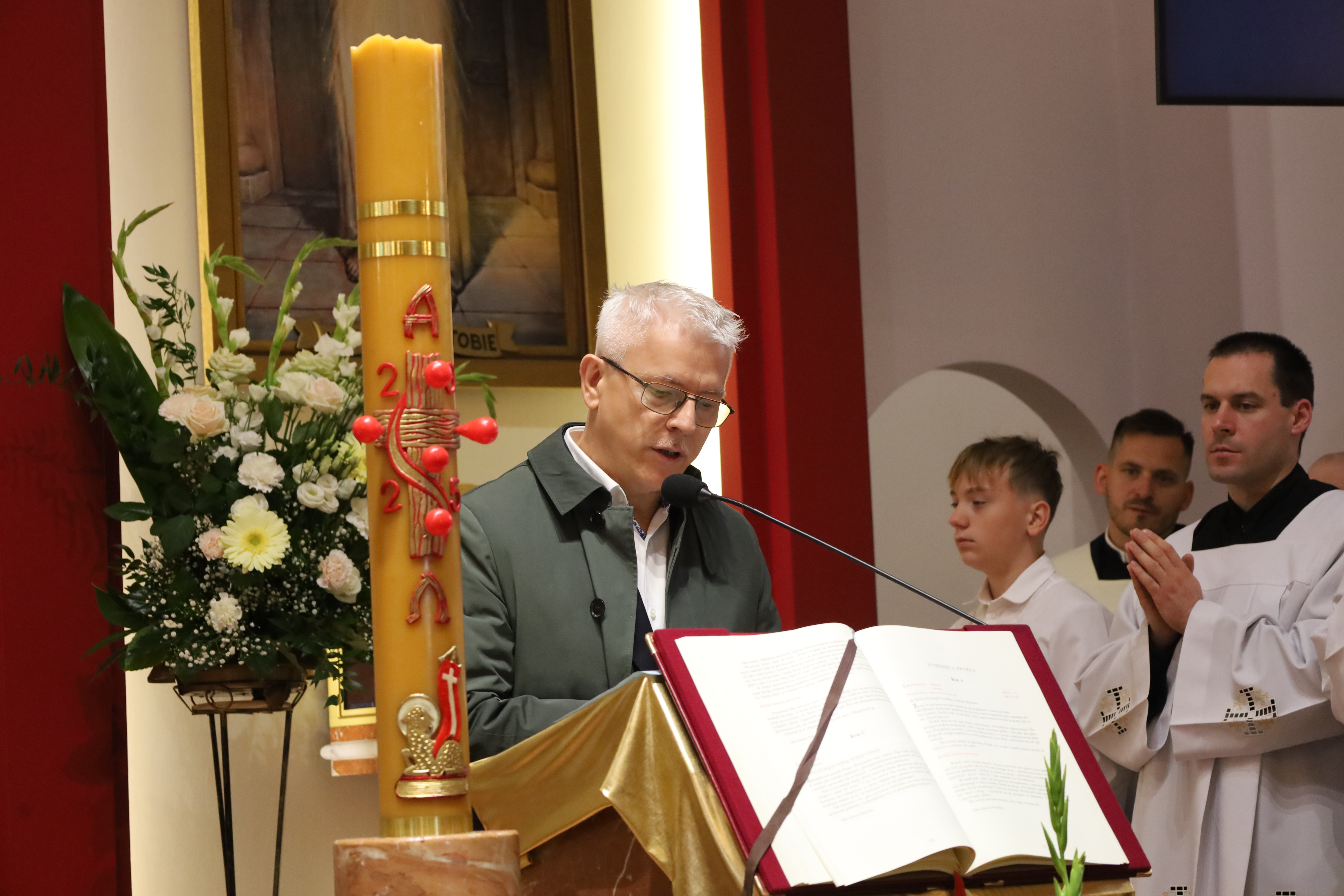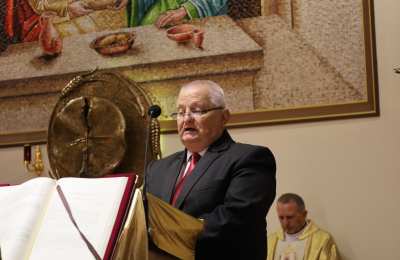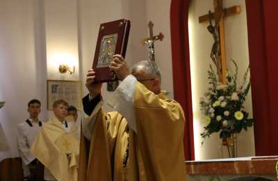 Na początku Eucharystii, słowo wprowadzenia wygłosił proboszcz parafii, ks. kan. Dominik Wodniczak. Powitał on rownież wszystkich zgromadzonych: