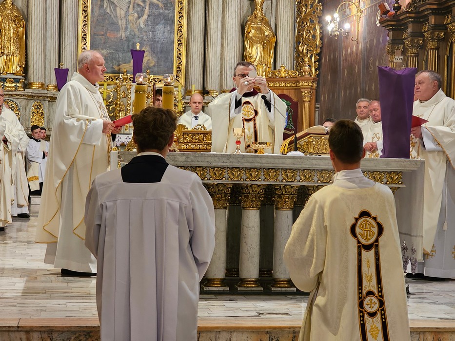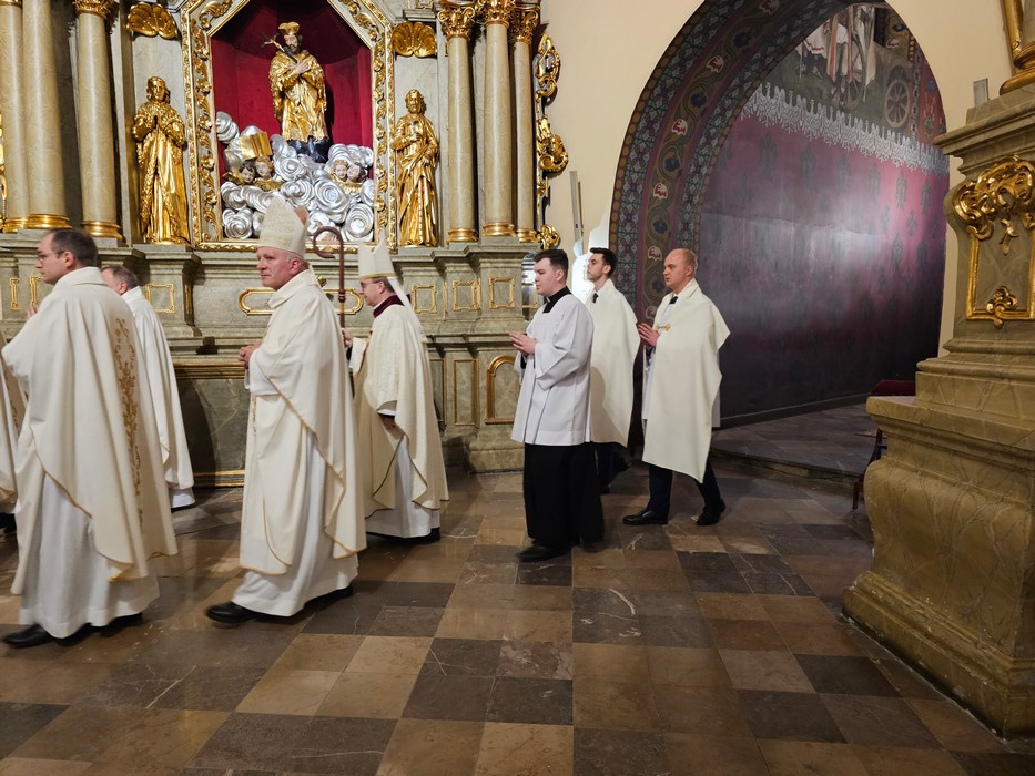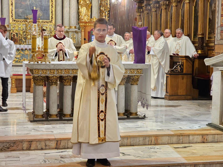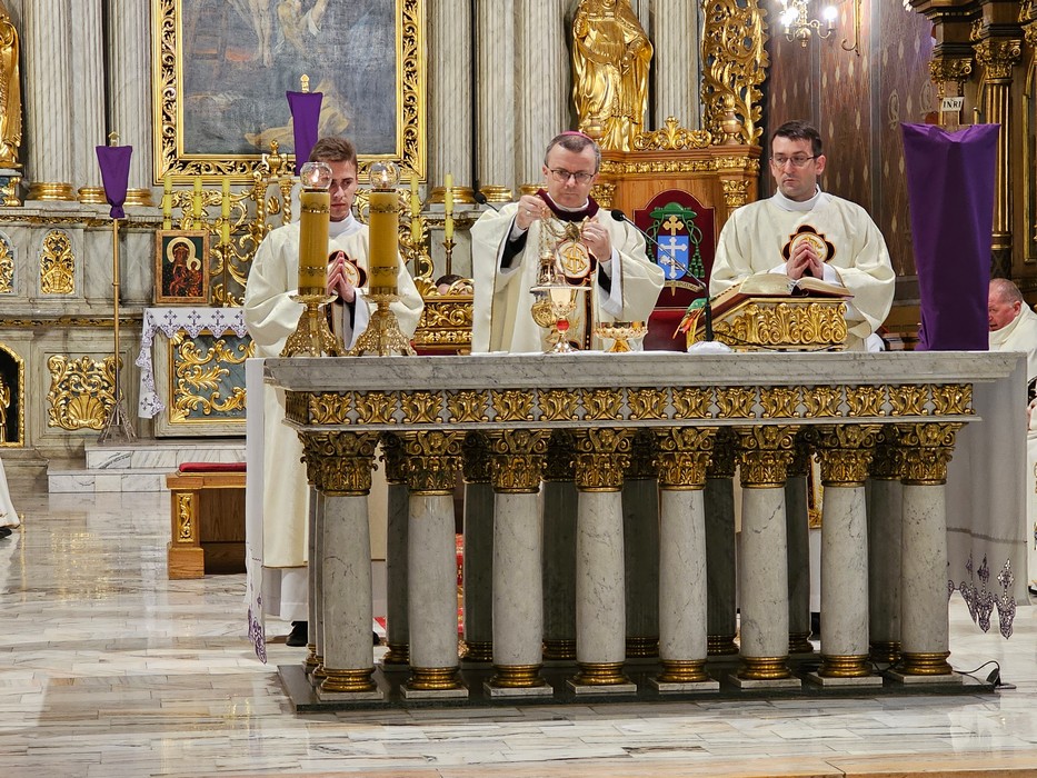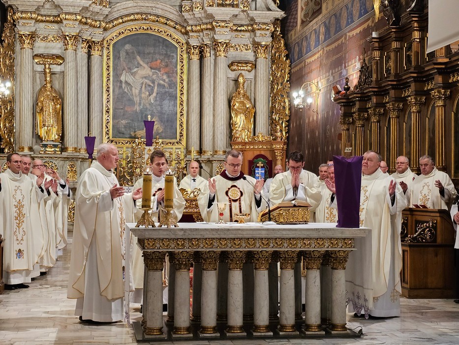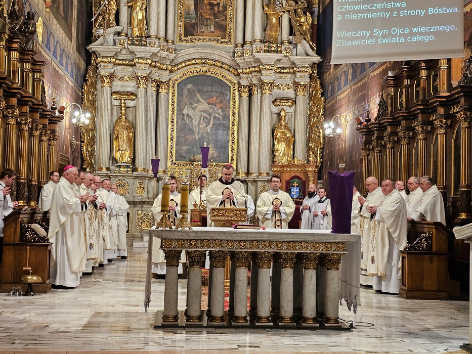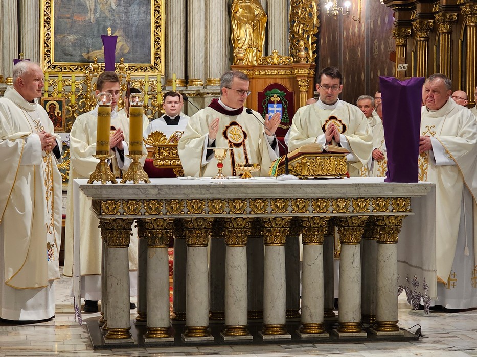 Mszę św. wraz z biskupem kaliskim Damianem Brylem koncelebrowali biskup pomocniczy Łukasz Buzun, proboszcz katedry ks. prał. Adam Modliński i kapłani. Modlili się także diakoni i klerycy roku propedeutycznego.