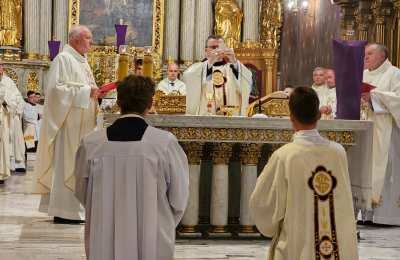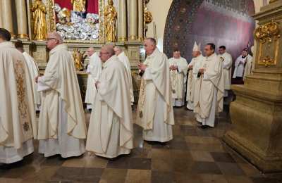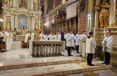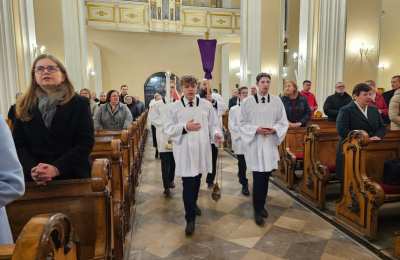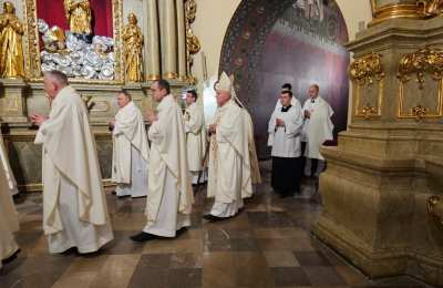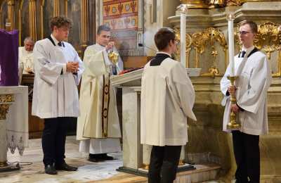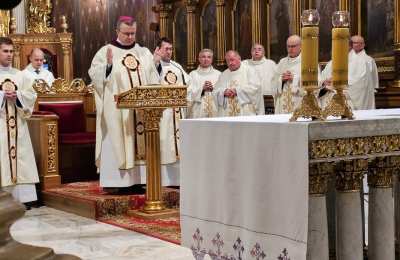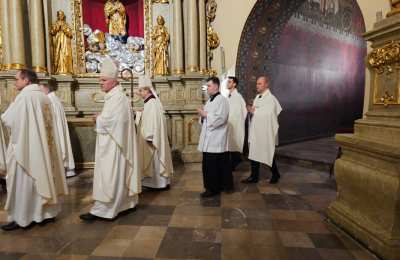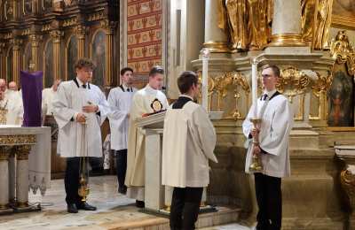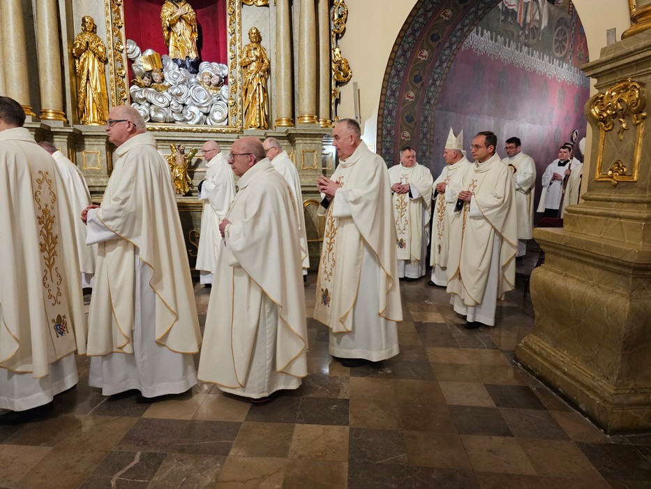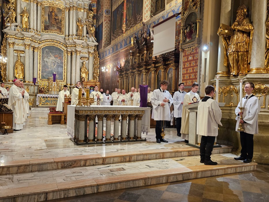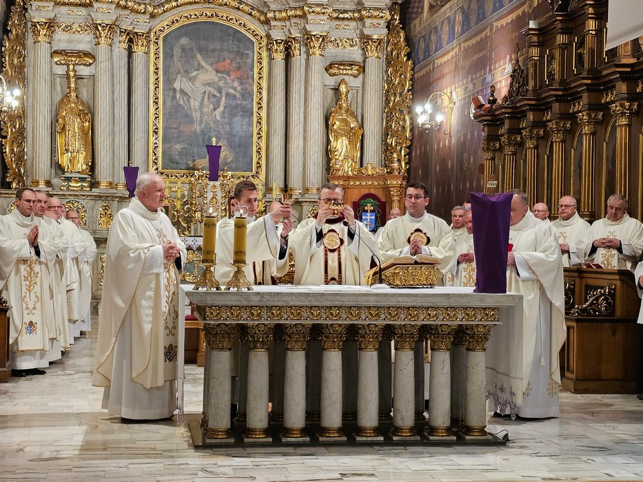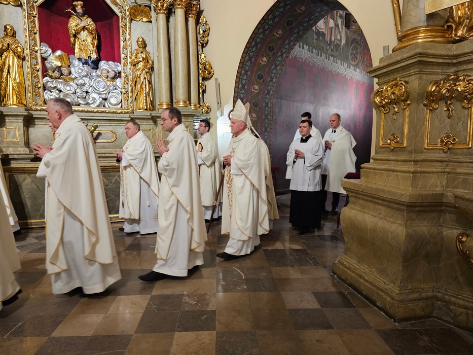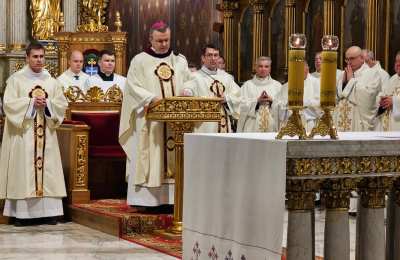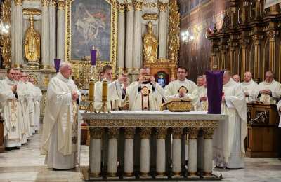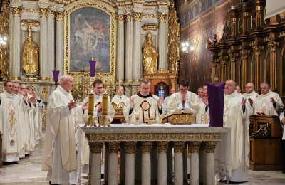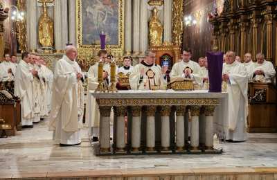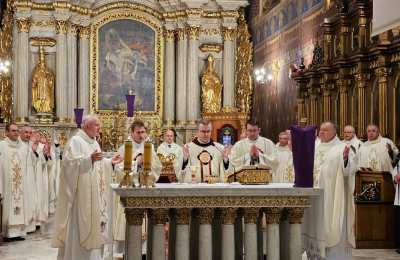 Mszę św. wraz z biskupem kaliskim Damianem Brylem koncelebrowali biskup pomocniczy Łukasz Buzun, proboszcz katedry ks. prał. Adam Modliński i kapłani. Modlili się także diakoni i klerycy roku propedeutycznego.