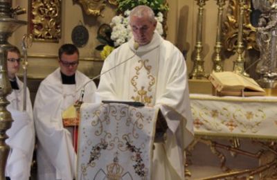 W samo południe została odprawiona uroczysta Msza św. której przewodniczył Biskup Łukasz Buzun. Wraz z Nim koncelebrowali przybyli do Sanktuarium Ojcowie Jezuici.