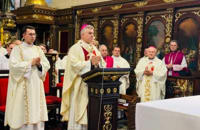 Przed Mszą św. słowa powitania wypowiedział ks. prał. Jacek Plota, kustosz Narodowego Sanktuarium św. Józefa w Kaliszu.