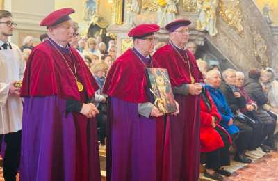 Po Mszy św. abp Zbigniew Zieliński udał się do Katedry św. Mikołaja w Kaliszu na krótką modlitwę. Metropolicie poznańskiemu towarzyszyli biskup kaliski Damian Bryl i proboszcz katedry ks. prał. Adam Modliński.