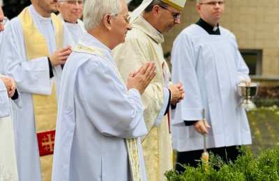 W homilii biskup kaliski zachęcał księży emerytów, aby za przyczyną św. Jana Pawła II modlili się w ważnych intencjach Kościoła: