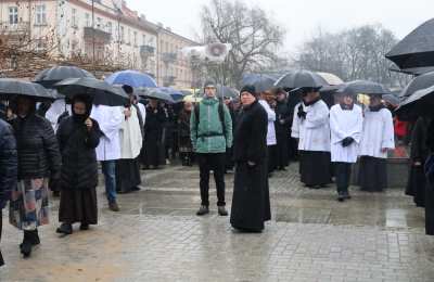 Nabożeństwu drogi krzyżowej ulicami miasta przewodniczył bp Damian Bryl, ale w wydarzeniu uczestniczyli również księża i zakonnicy posługujący w kaliskich parafiach, a także osoby życia konsekrowanego, klerycy wraz z przełożonymi etapu propedeutycznego i mieszkańcy Kalisza oraz okolicznych miejscowości.