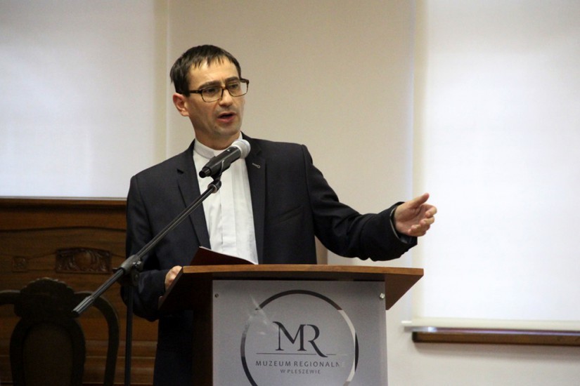 Wydania okazałej publikacji gratulowali: Arkadiusz Ptak, zastępca burmistrza Miasta i Gminy Pleszew oraz prowadzący spotkanie Adam Staszak, dyrektor Muzeum Regionalnego w Pleszewie.