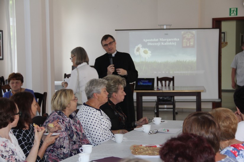 Przed Nabożeństwem do Dwóch Serc zgromadzeni uczestnicy Apostolatu Margaretka z terenu Diecezji Kaliskiej mieli czas na spotkanie integracyjne przy kawie i ciastkach.