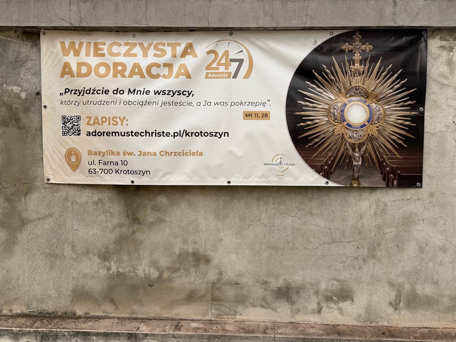 W bazylice św. Jana Chrzciciela w Krotoszynie od dziś przez 24 godziny na dobę będzie można adorować Pana Jezusa w Najświętszym Sakramencie. Inaugurację Kaplicy Wieczystej Adoracji poprzedziła Msza św. pod przewodnictwem biskupa kaliskiego Damiana Bryla. Jest to trzecie takie miejsce w diecezji kaliskiej. Kaplica Wieczystej Adoracji znajduje się także w Sanktuariach Miłosierdzia Bożego w Kaliszu i Ostrowie Wielkopolskim.