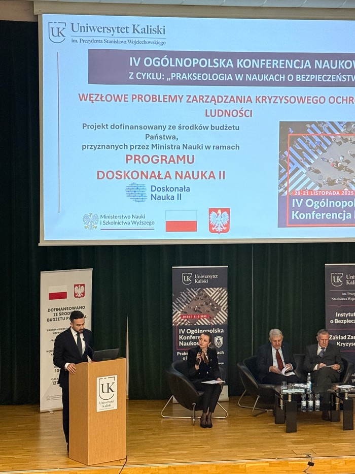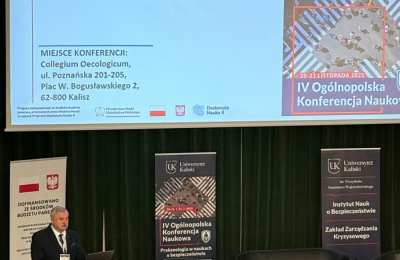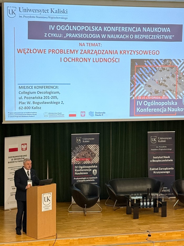 „Prakseologia w naukach o bezpieczeństwie. Węzłowe problemy zarządzania kryzysowego i ochrony ludności” - pod takim hasłem w dniach 20-21 listopada 2025 roku na Uniwersytet Kaliski odbyła się IV Ogólnopolska Konferencja Naukowa.