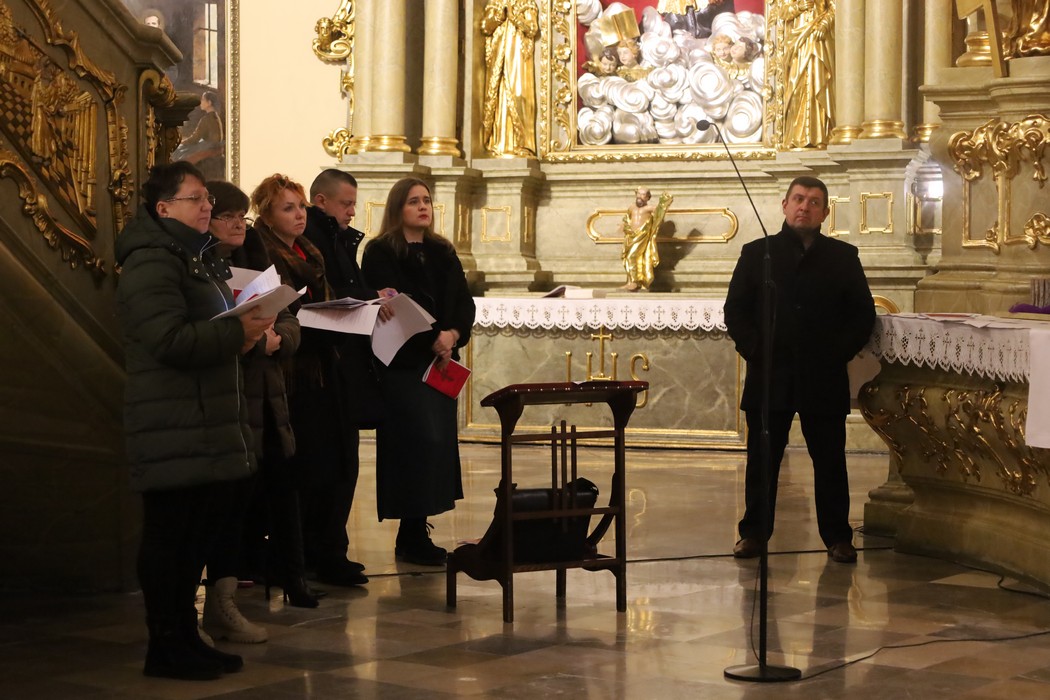 Eucharystii przewodniczył ks. Roman Woźniak, kapłan Kościoła grekokatolickiego posługujący dla Ukraińców na terenie Kalisza i Kępna. U progu modlitewnego spotkania przypomniał w języku ukraińskim o okolicznościach, które towarzyszą zgromadzonym w świątyni wiernym: