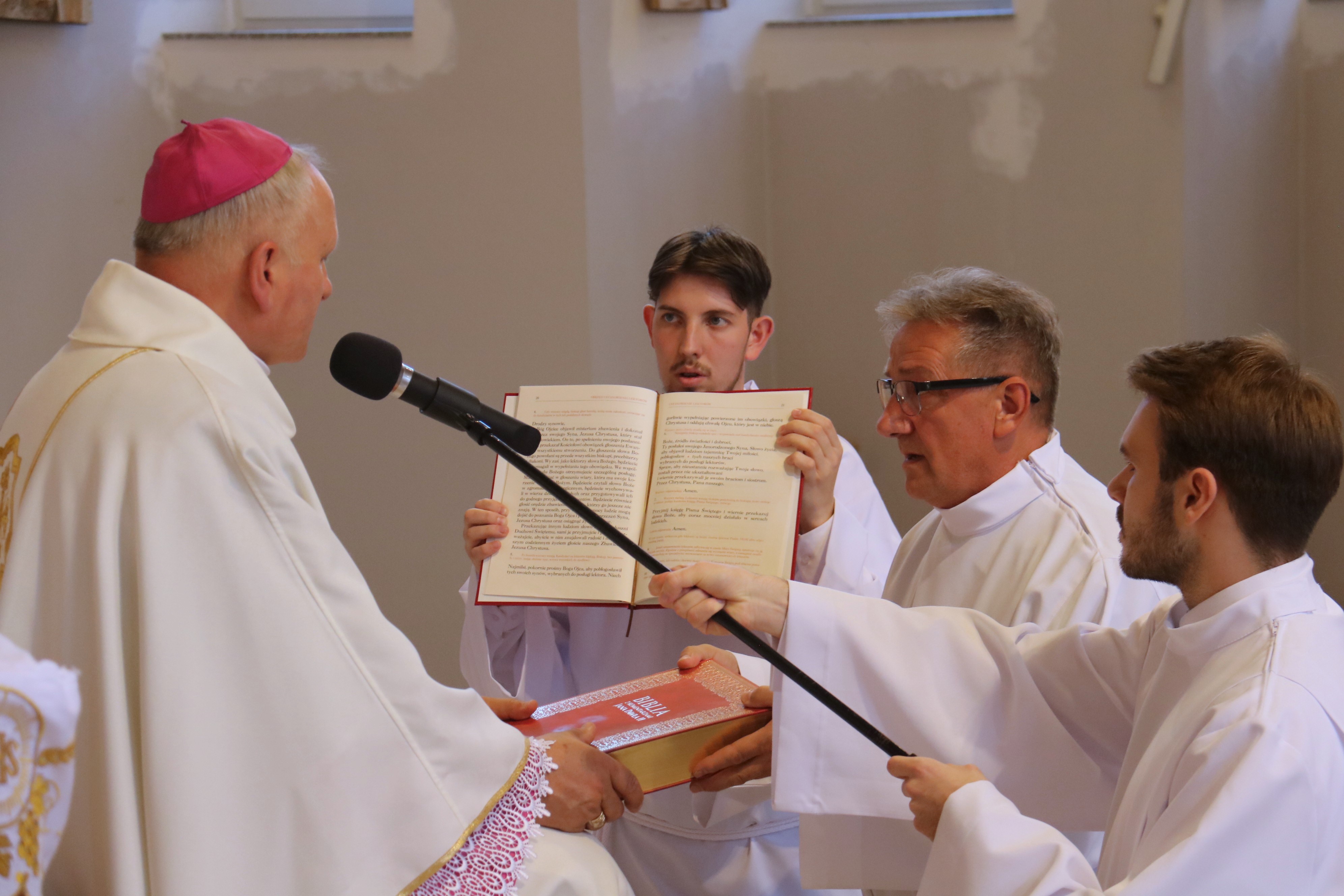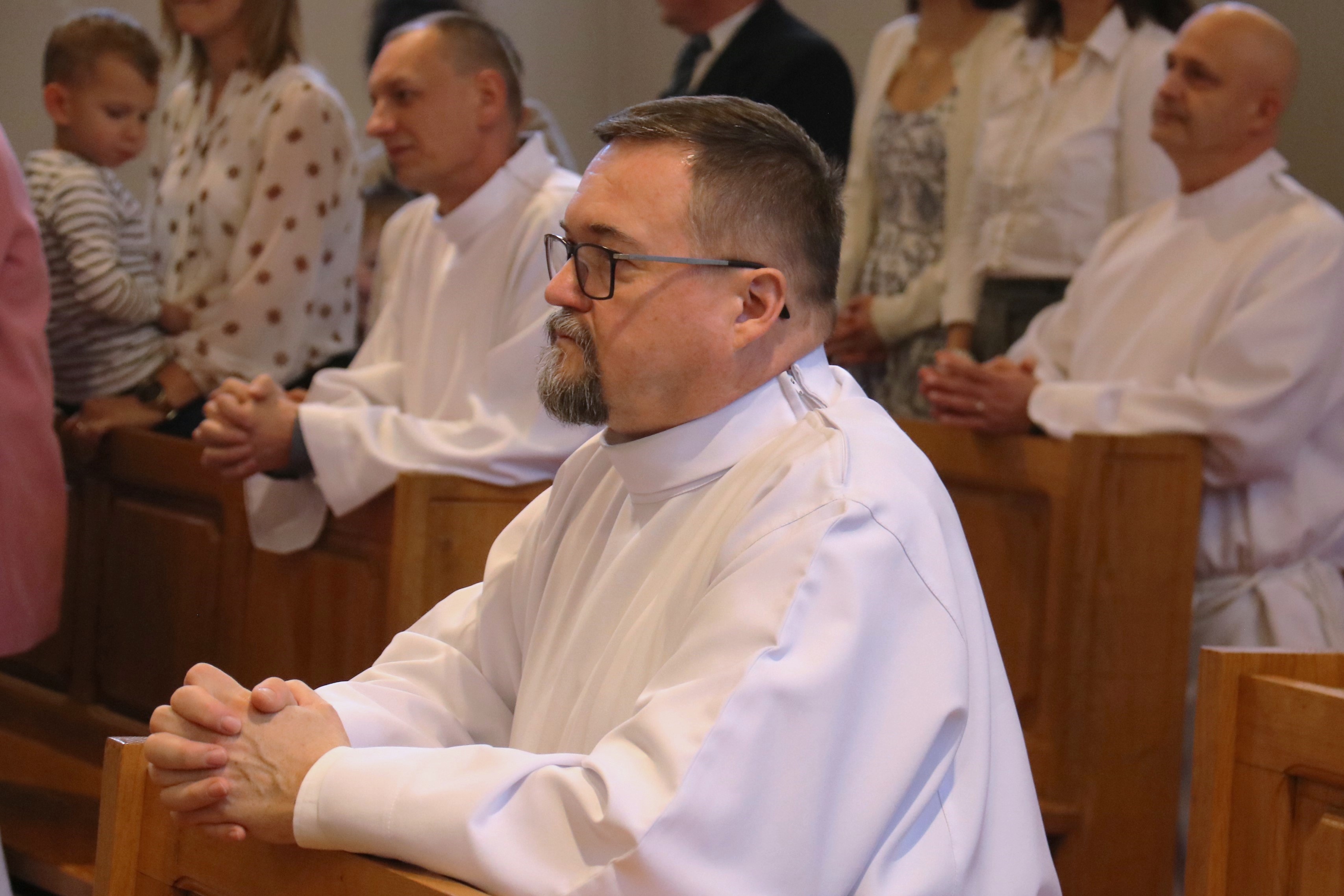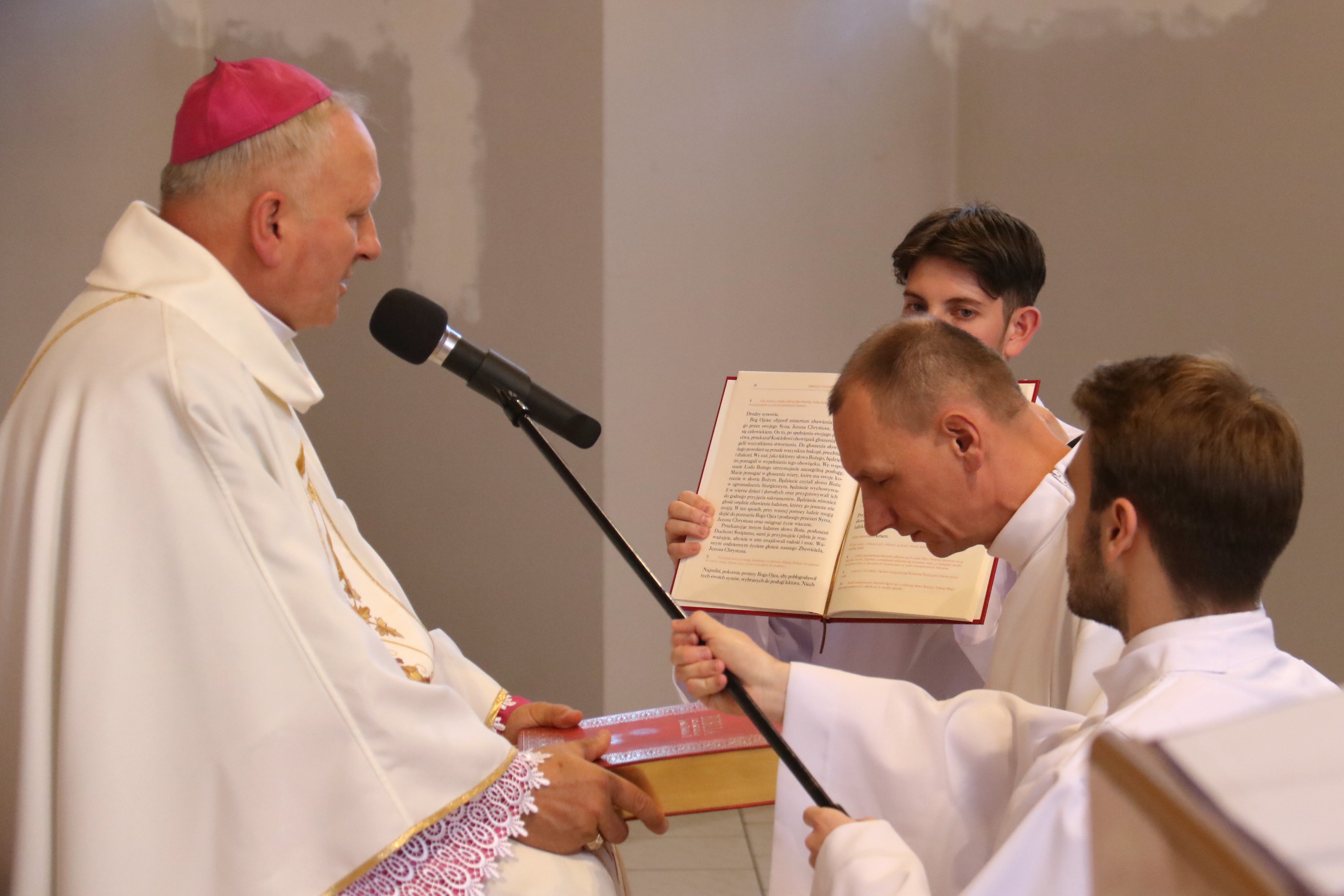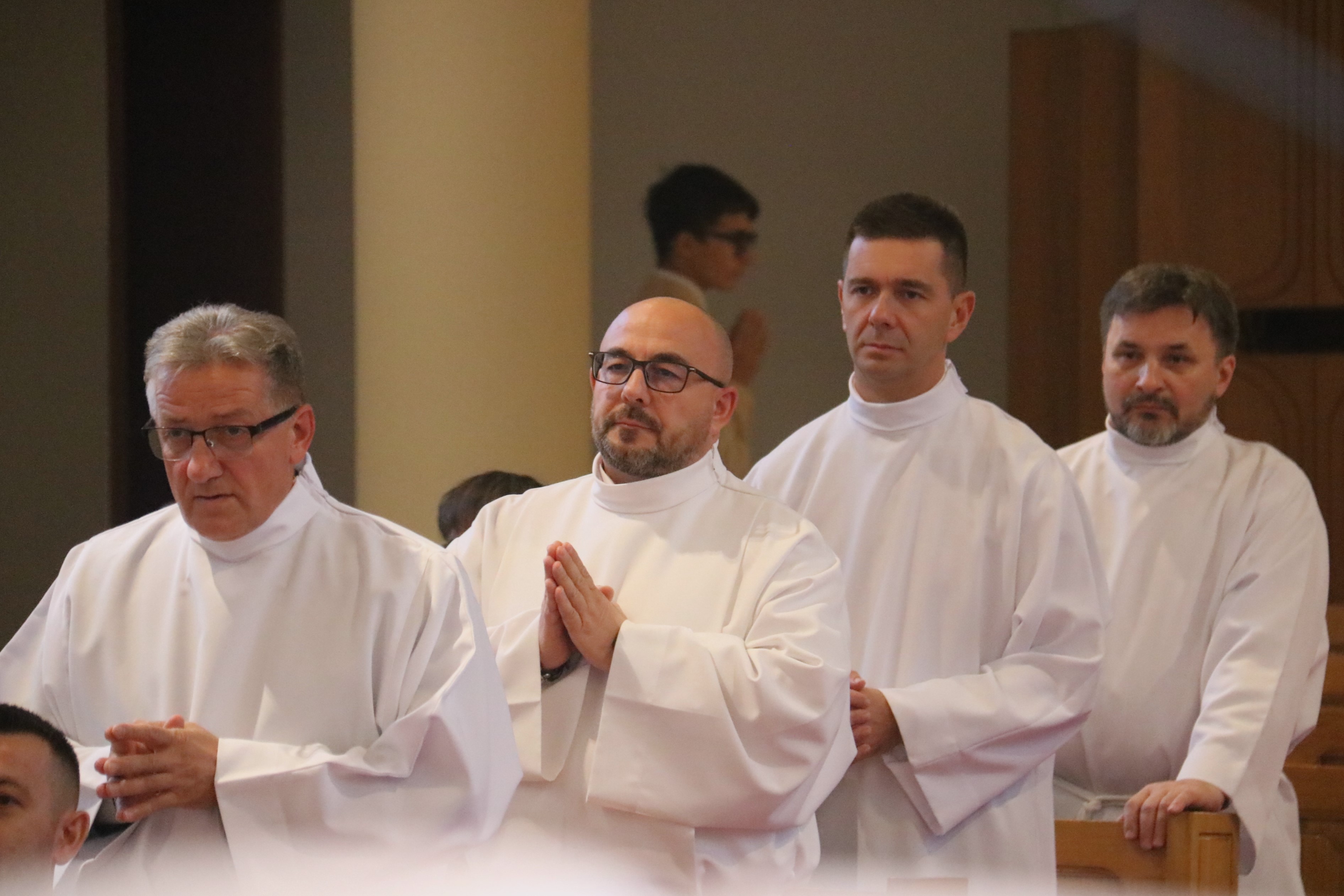 Wraz z bp. Łukaszem Buzunem Mszę św. koncelebrowali ks. kan. Marcin Papuziński, kanclerz Kurii Diecezjalnej w Kaliszu, ks. Dariusz Kuliński, dyrektor Ośrodka Formacji Diakonów Stałych Diecezji Kaliskiej i księża proboszczowie parafii, z których pochodzą kandydaci do przyjęcia święceń diakona stałego.