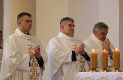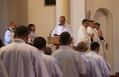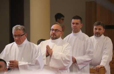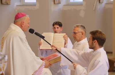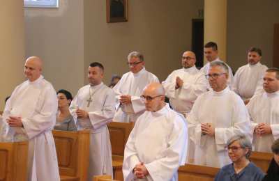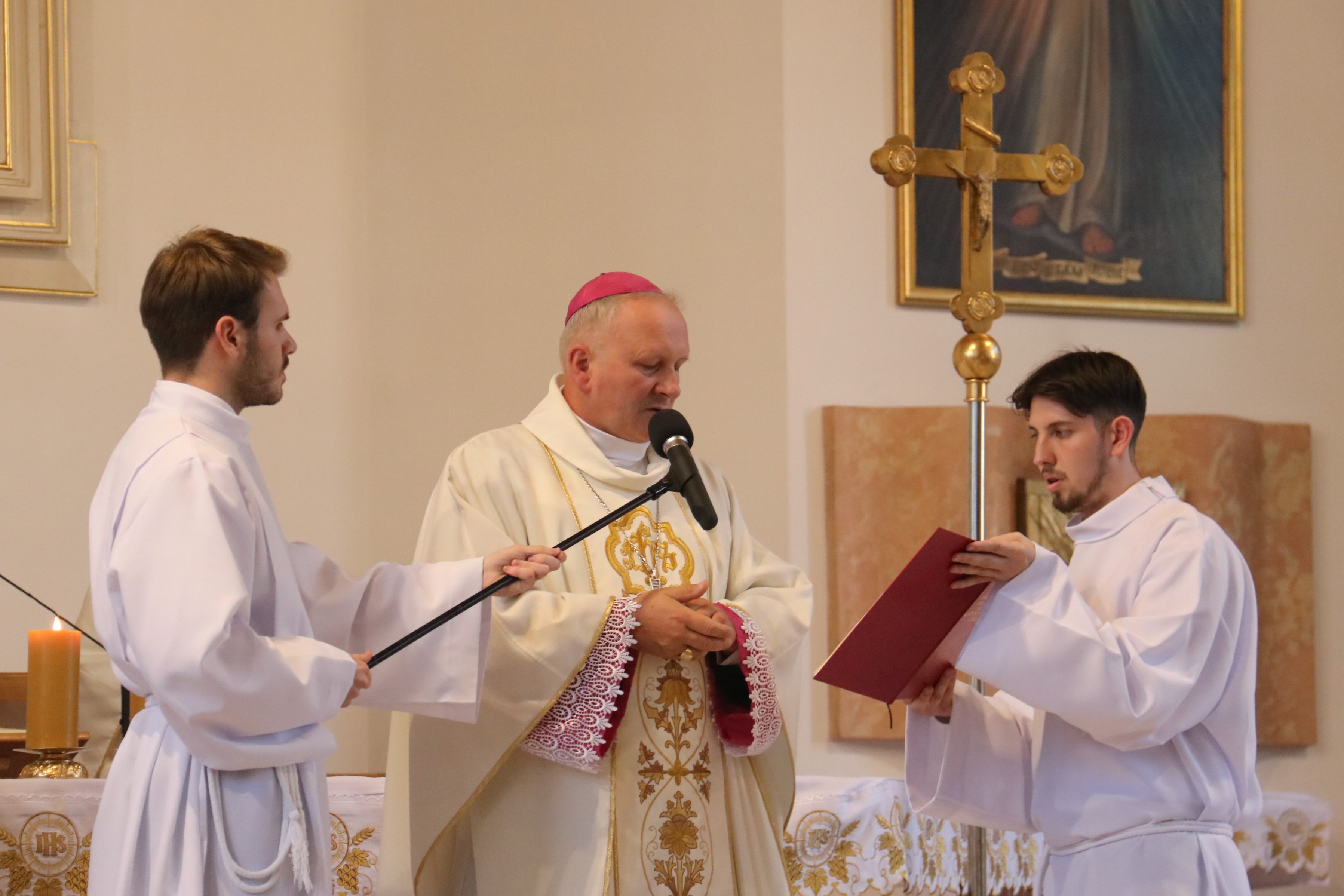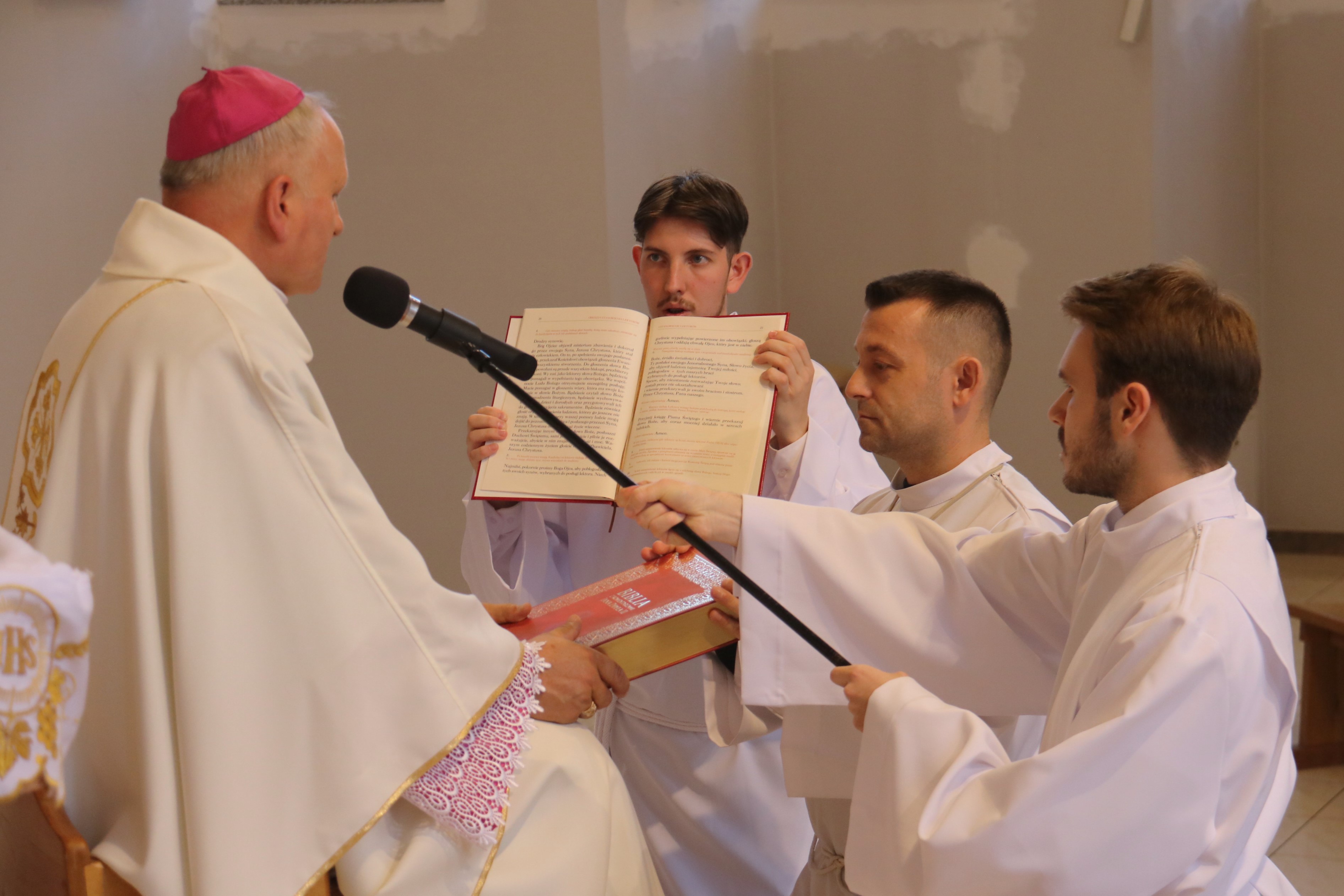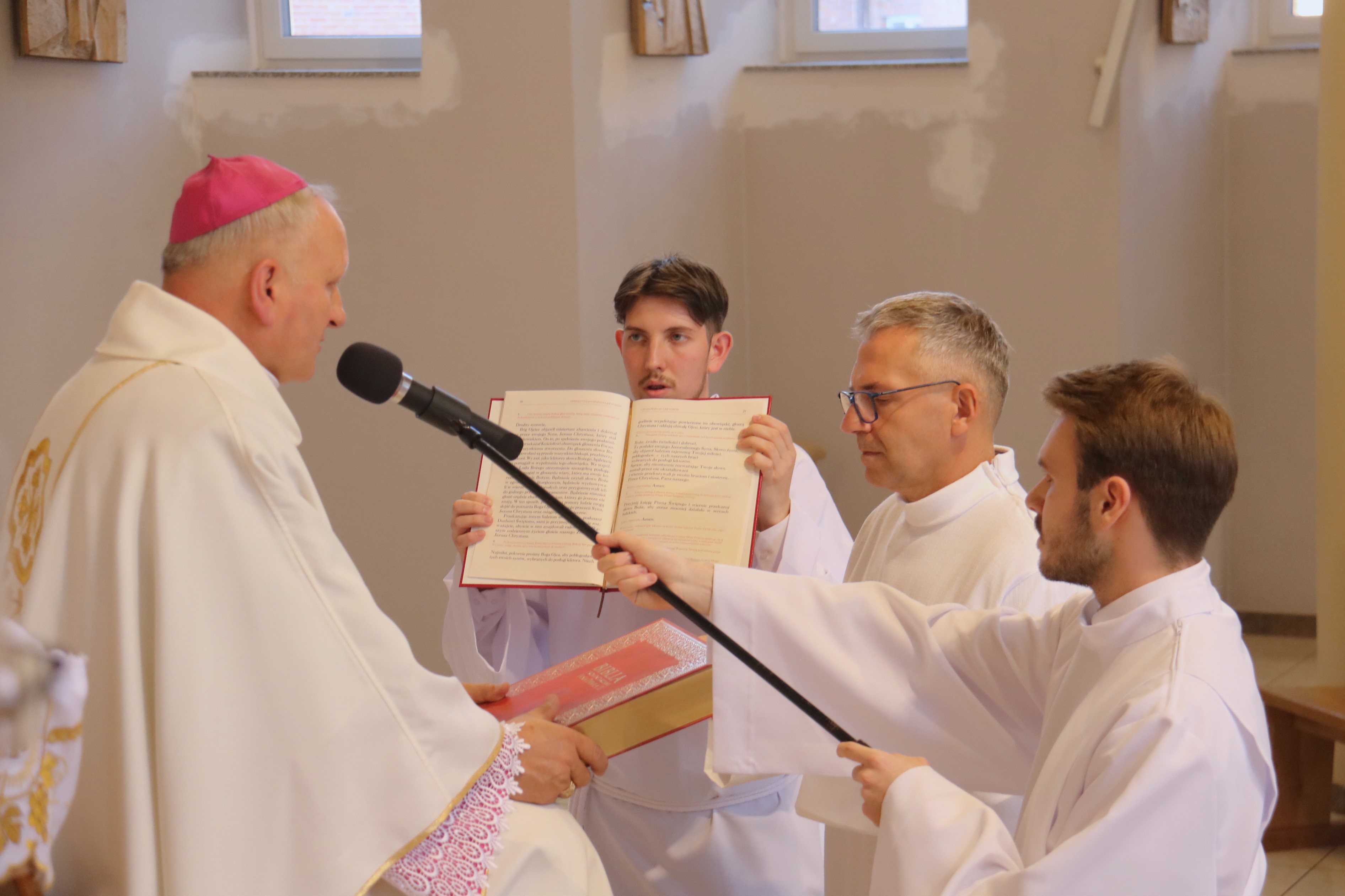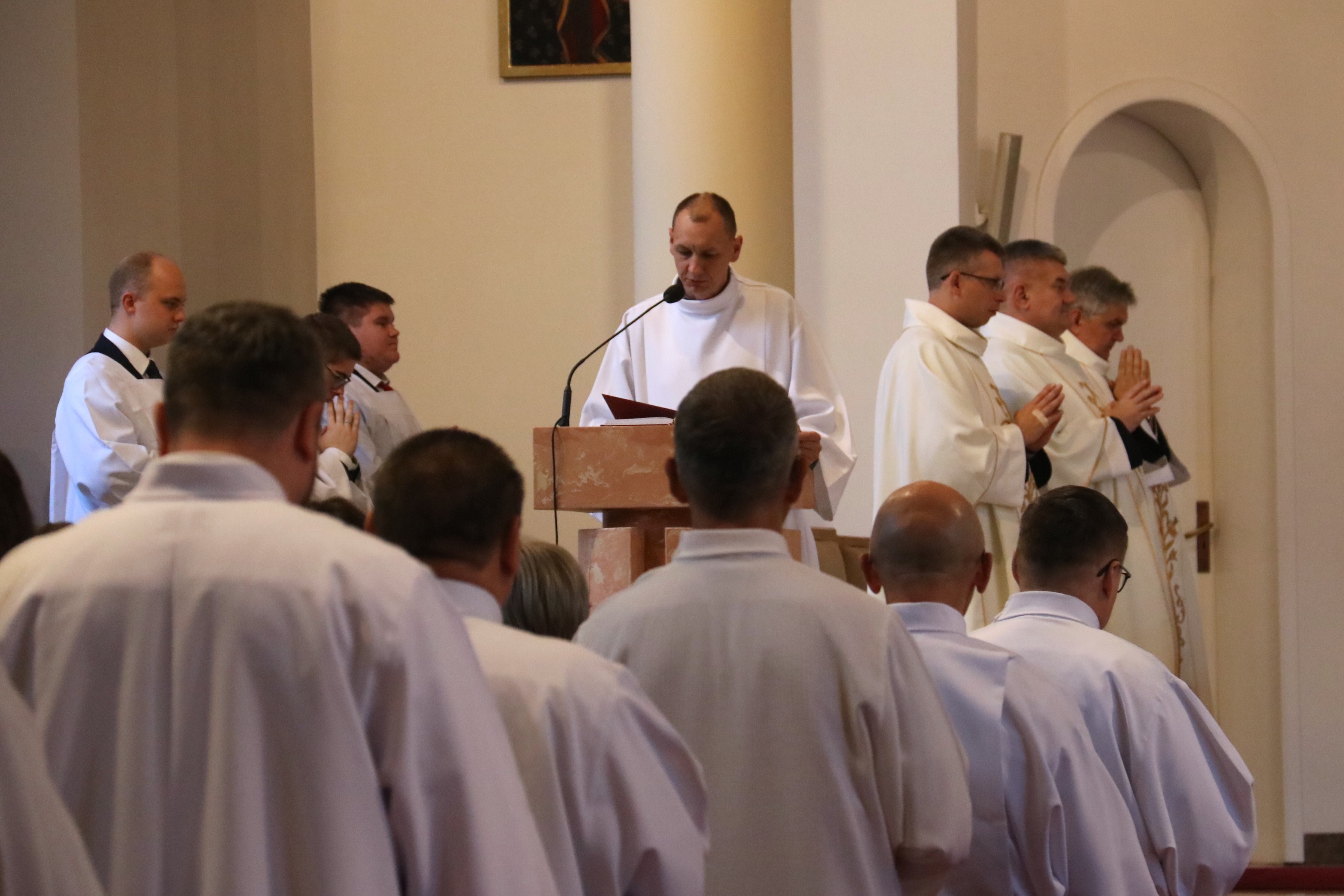 Wraz z bp. Łukaszem Buzunem Mszę św. koncelebrowali ks. kan. Marcin Papuziński, kanclerz Kurii Diecezjalnej w Kaliszu, ks. Dariusz Kuliński, dyrektor Ośrodka Formacji Diakonów Stałych Diecezji Kaliskiej i księża proboszczowie parafii, z których pochodzą kandydaci do przyjęcia święceń diakona stałego.
