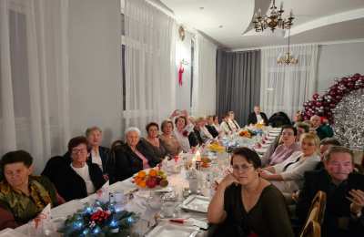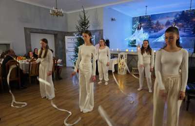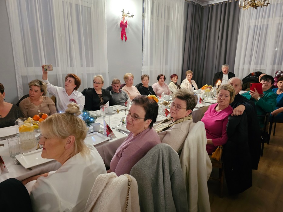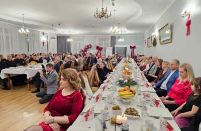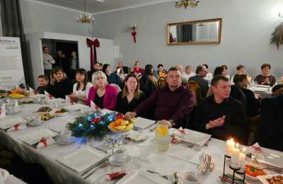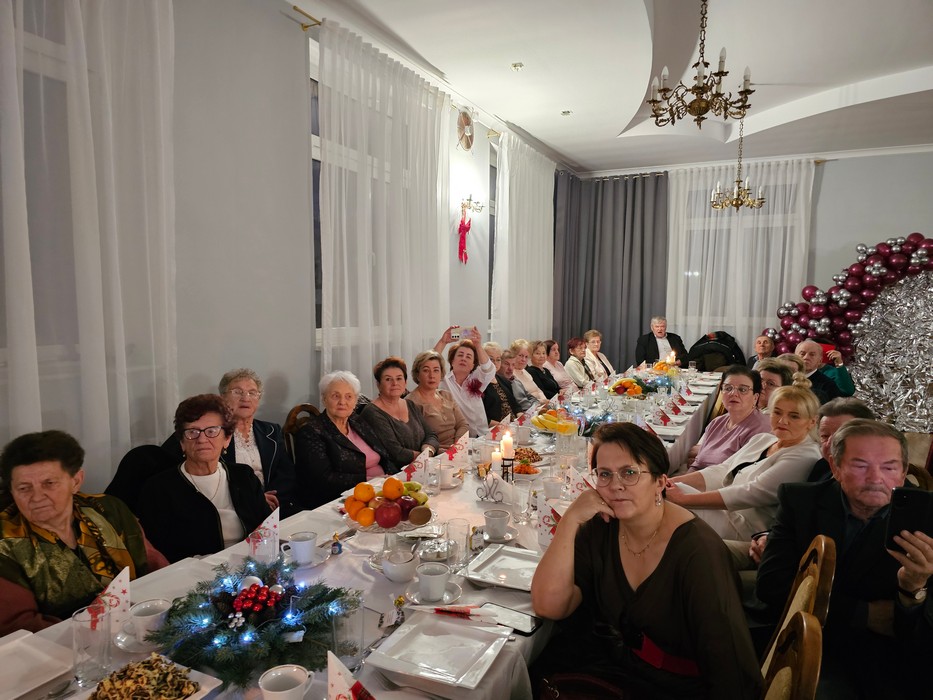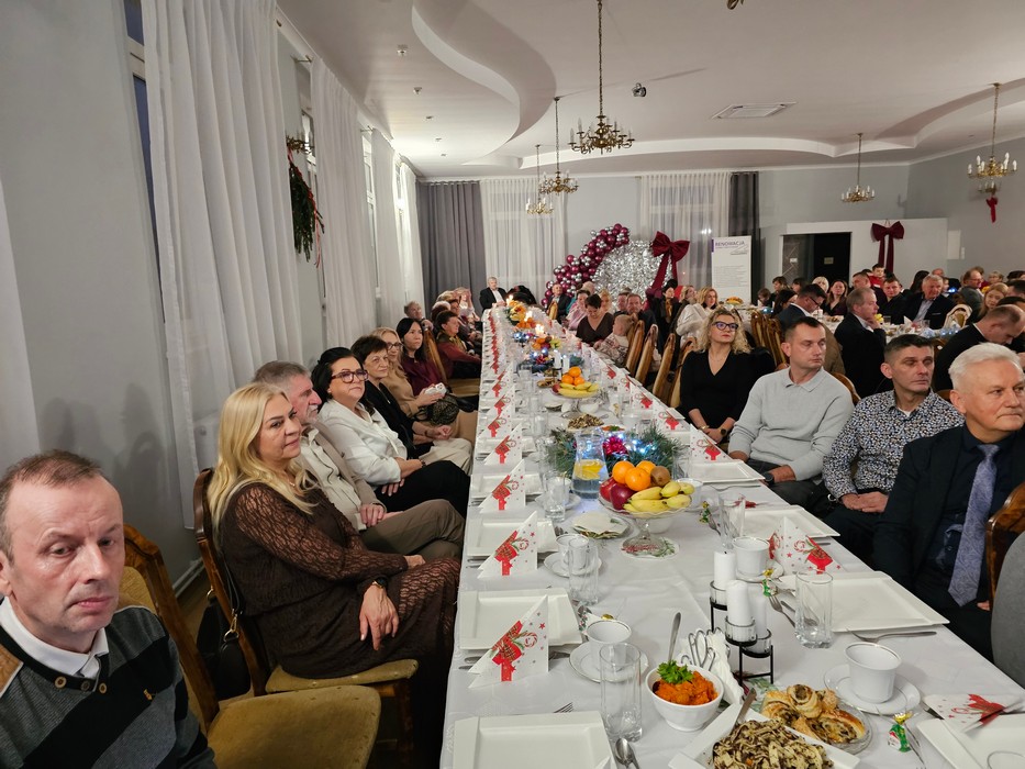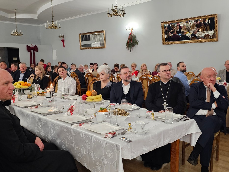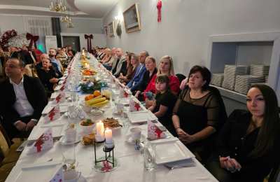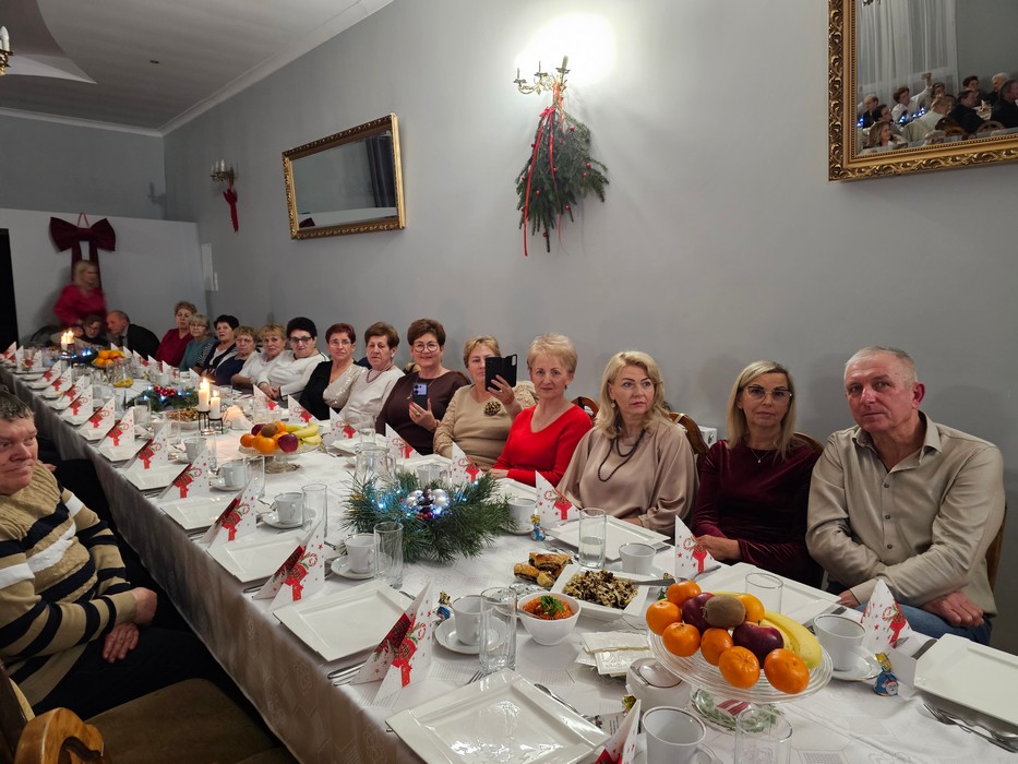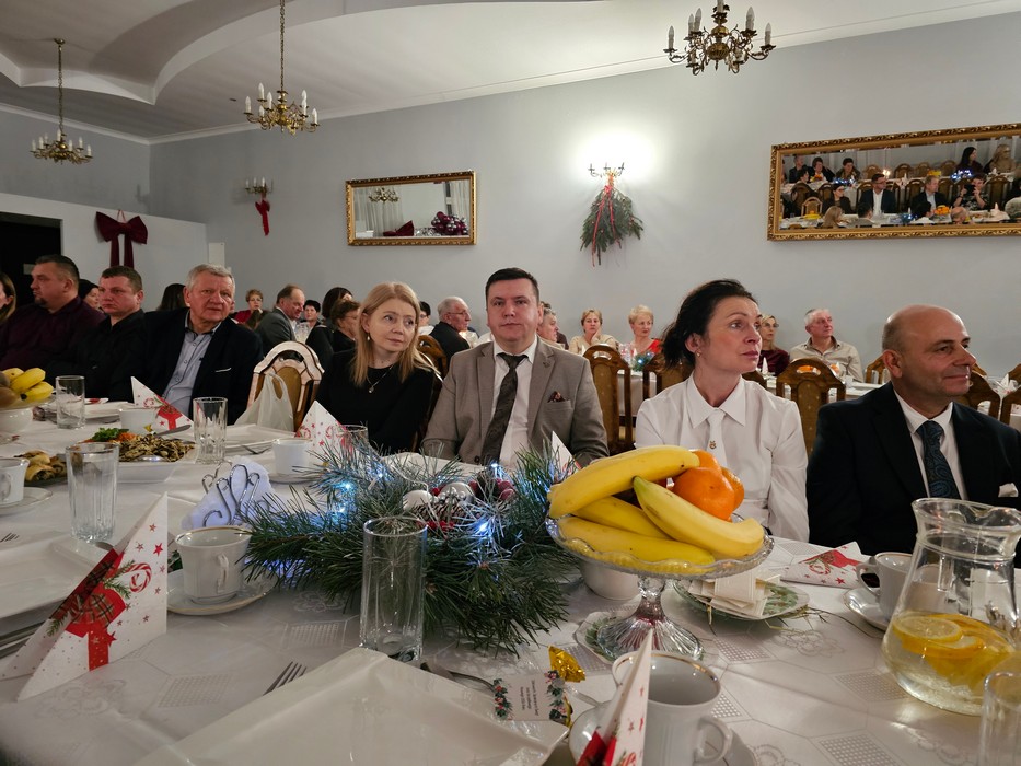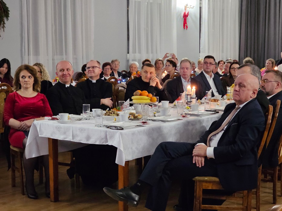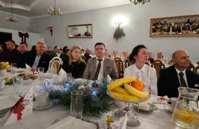 Po przełamaniu się opłatkiem mieszkańcy i goście zasiedli do kolacji wigilijnej. Na stołach znalazły się takie potrawy jak barszcz wigilijny, ryby, kapusta z grochem, makiełki, pierniki, ciasto, owoce.