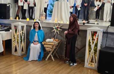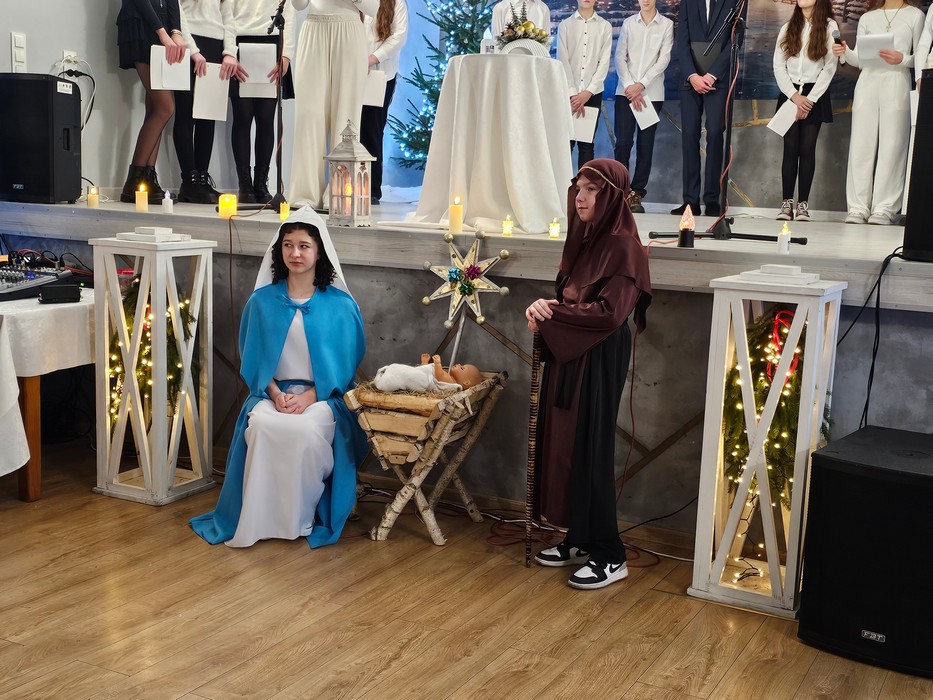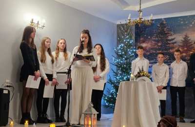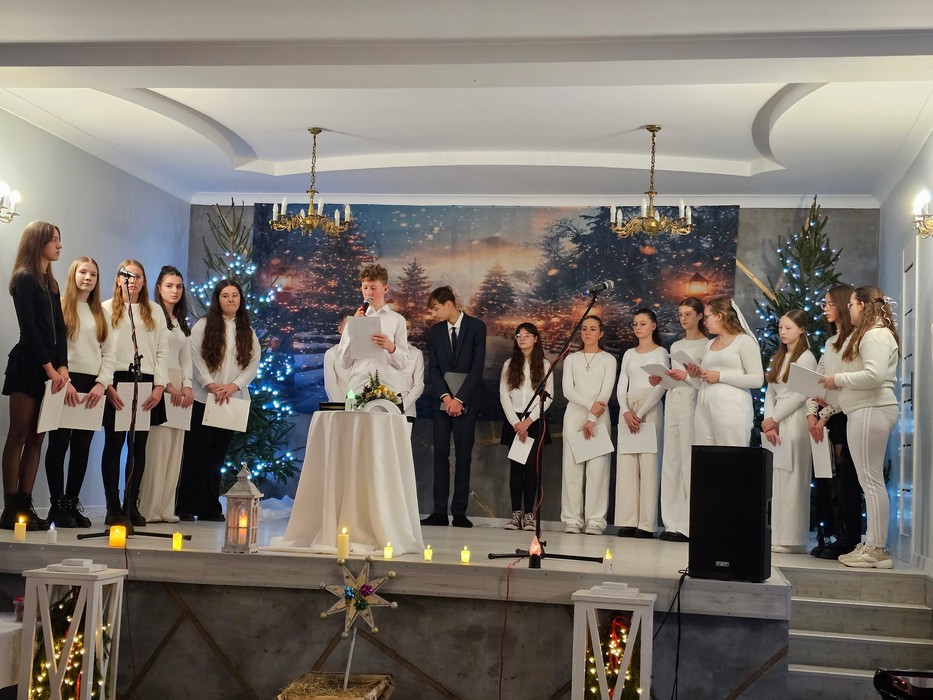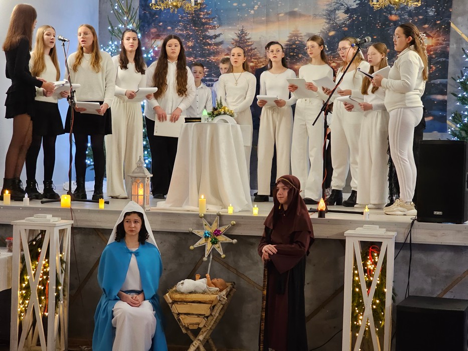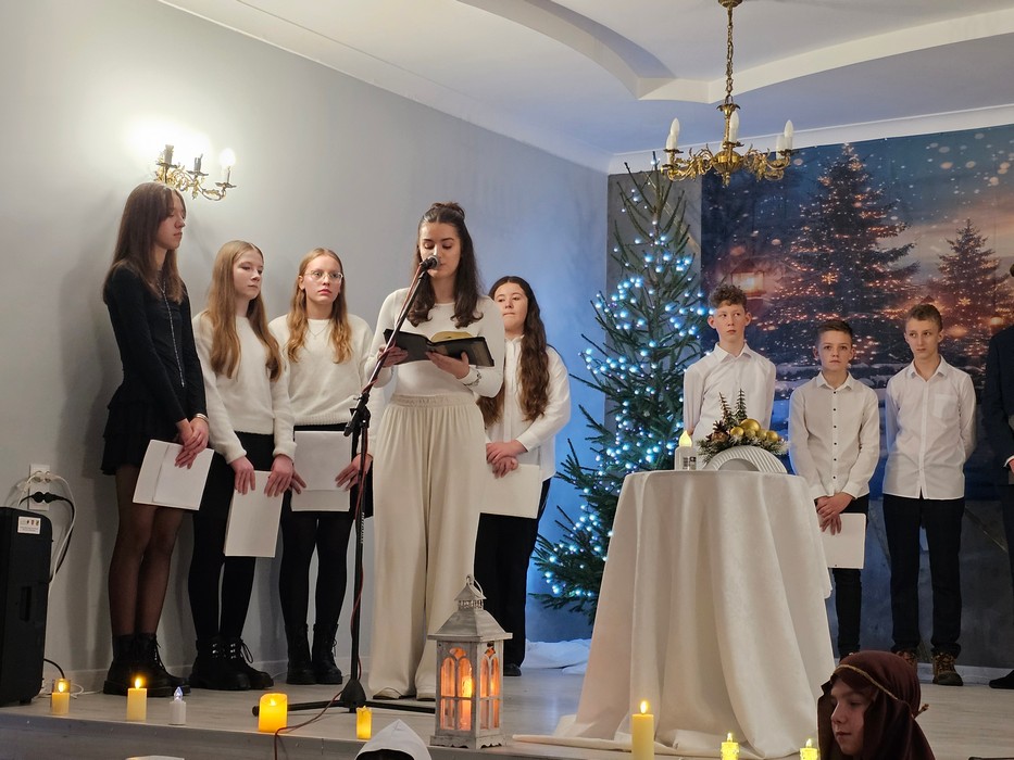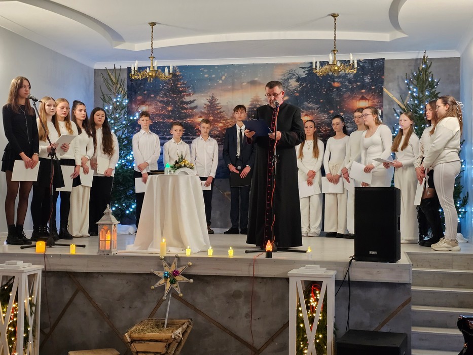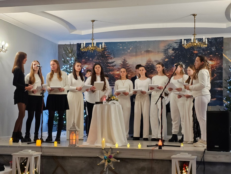 Mieszkańcy i goście mieli okazję wysłuchać wierszy o tematyce bożonarodzeniowej, pastorałek i kolęd w wykonaniu uczniów klas VI-VIII Szkoły Podstawowej im. Fryderyka Chopina w Strzyżewie. Program artystyczny młodzież przygotowała pod kierunkiem ks. inf. Juliana Kopińskiego, proboszcza parafii polskokatolickiej w Kotłowie i nauczycielki Darii Kwapisz.