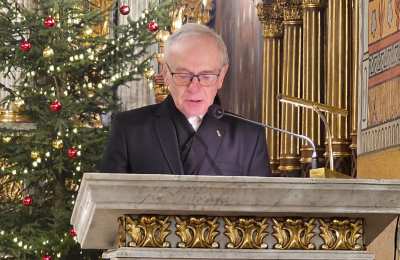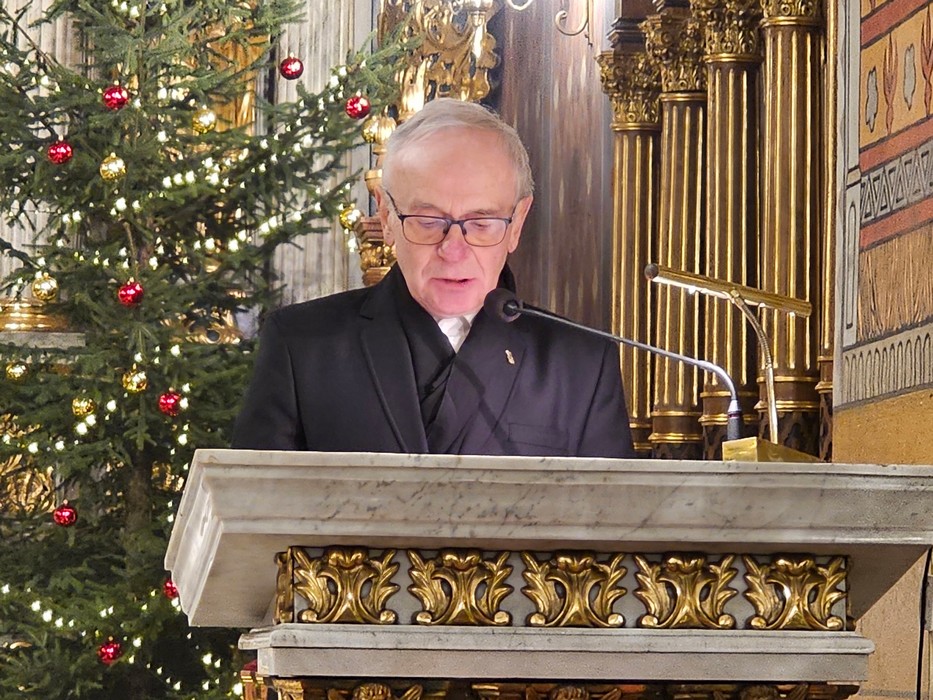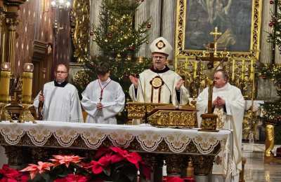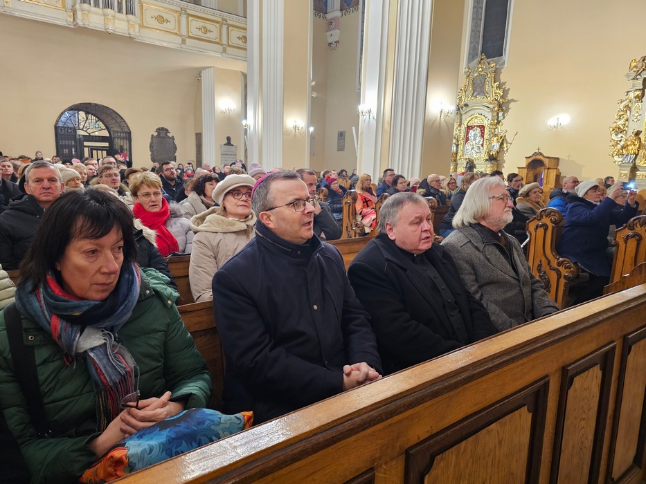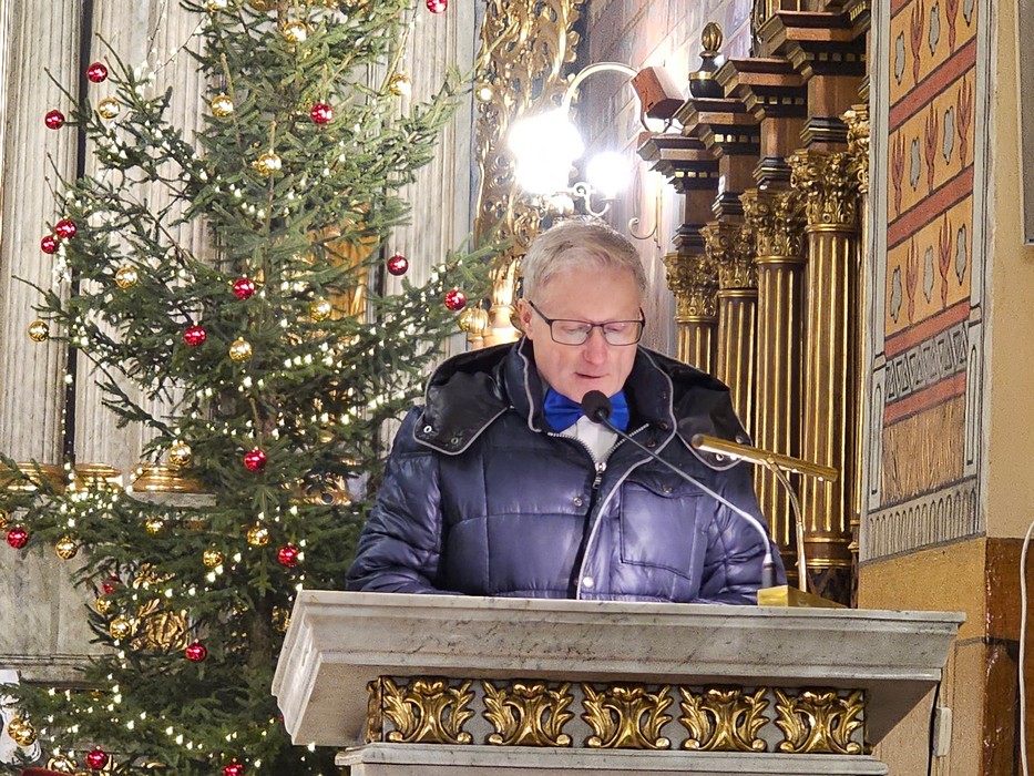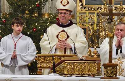 Dziękował chórzystom i muzykom za możliwość wspólnego kolędowania. - Bardzo dziękuję wam drodzy i szanowni członkowie orkiestry i chórów, że jesteście dzisiaj razem z nami tutaj w naszej katedrze i że możemy nie tylko was słuchać, ale możemy razem z wami Boga uwielbiać. Ufamy, że to nasze wspólne uwielbienie Pana Boga poruszy nasze serca i otworzy jeszcze bardziej na Niego – mówił bp Bryl.