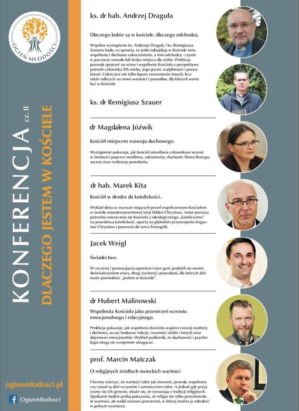 Po ubiegłorocznym sukcesie pierwszej edycji konferencji „Ogień młodości”, która odbyła się w ubiegłym roku, ks. kan. Włodzimierz Guzik wraz z Szkołą Liderów Parafialnych postanowili zorganizować kolejne takie spotkanie. - Pierwsza edycja przyniosła wiele dobrych owoców. Już sama frekwencja (ponad 250 osób) pokazała, jak bardzo ludzie potrzebują rozmowy o wierze i obecnej sytuacji Kościoła. A dla uczestników Szkoły Liderów Parafialnych było to także doświadczenie wspólnego działania i nauka, jak w praktyce organizuje się duże wydarzenia – mówi ks. Włodzimierz Guzik, pomysłodawca wydarzenia.