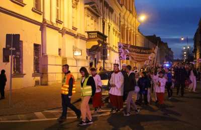 Uroczysty pochód wyruszył spod kościoła Świętej Rodziny i dotarł do Narodowego Sanktuarium św. Józefa, niosąc ze sobą modlitwę, śpiew i radość ze świętych obcowania. W barwnym korowodzie maszerowało rekordowo blisko 300 uczestników – wielu z nich przebranych za swoich ulubionych świętych i błogosławionych. Niektórzy nieśli relikwie patronów, inni transparenty i symbole wiary, tworząc żywy obraz Kościoła pielgrzymującego. Uczestnicy wspólnie śpiewali i modlili między innymi litanią do Wszystkich Świętych.