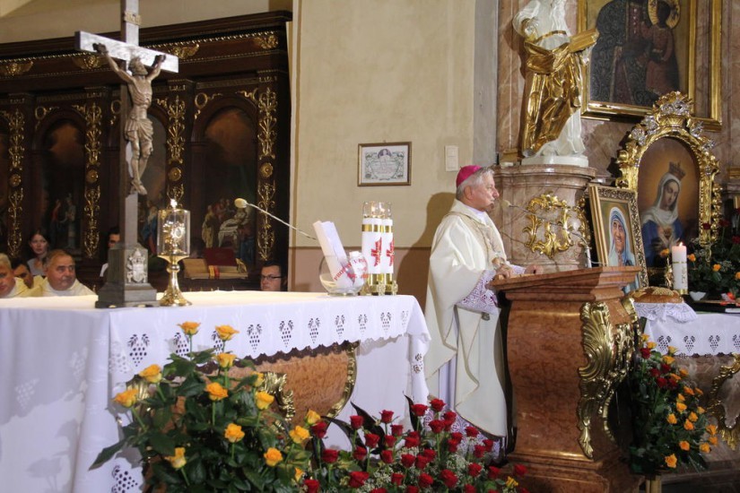 Temat sierpniowego spotkania brzmiał: „Dzieci poczęte najuboższymi z najuboższych – o potrzebie odwagi sprzeciwu odrzucenia tych najmniejszych”. Przybyłych na spotkanie pielgrzymów z całej Polski przywitał ks. prał. Jacek Plota, kustosz Sanktuarium św. Józefa. – W ubiegłym tygodniu przeżywaliśmy ŚDM i wizytę Ojca Świętego Franciszka w naszej ojczyźnie, który młodym ludziom z całego świata przekazał swoje przesłanie, aby budować mosty a nie mury, a także jak pełniąc uczynki miłosierdzia żyć we współczesnym trudnym świecie. Ojciec Święty mówił o konieczności obrony życia i rodziny. Miniony czas to święto wiary, młodości i radości. To czas głębokich przeżyć, które na długo pozostaną w sercach i umysłach nas wszystkich. Z Jasnogórskiej Kany i Krakowskiego Wieczernika przychodzimy dziś do „Polskiego Nazaretu”, aby jak co miesiąc modlić się w intencji obrony poczętego życia i rodzin szczególnie tych, którym jest ciężko - mówił kustosz kaliskiej bazyliki. Modlitwę wstawienniczą w intencji rodzin i obrony życia człowieka przed obrazem św. Józefa Kaliskiego prowadził ks. Michał Świgoniak.