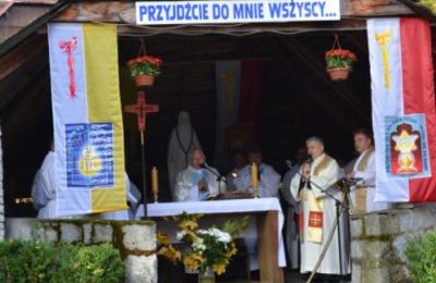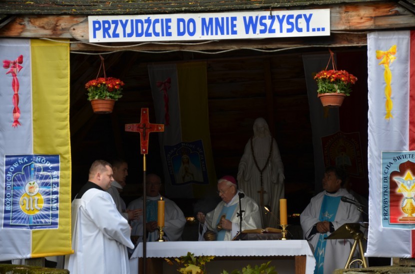 Na miejscu przybyłych pielgrzymów powitał proboszcz tamtejszej parafii – ks. Bogusław Sawaryn. Następnie sprawowana była Eucharystia, pod przewodnictwem ks. biskupa Stefana Cichego – biskupa seniora diecezji legnickiej. Wśród koncelebrujących znaleźli się m.in. wymienieni wyżej kaliscy proboszczowie oraz urodzony w Jeleniej Górze ks. prof. Paweł Bortkiewicz, teolog, członek Towarzystwa Chrystusowego dla Polonii Zagranicznej.
