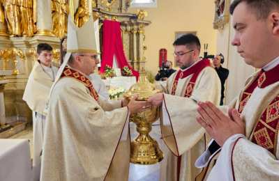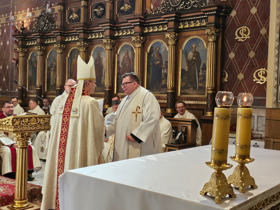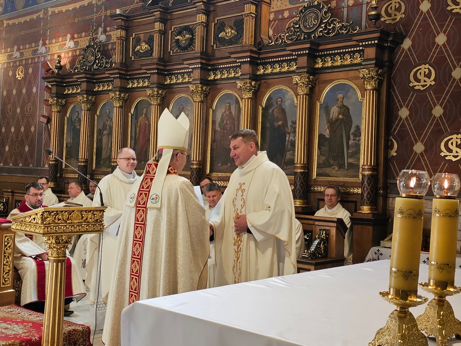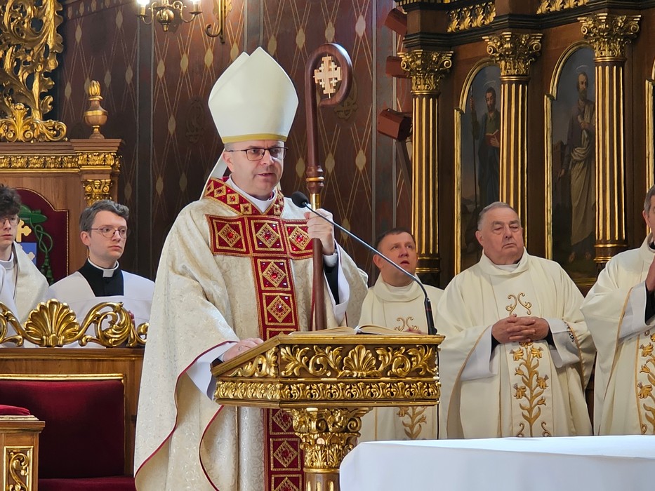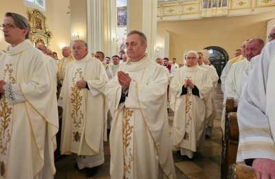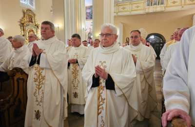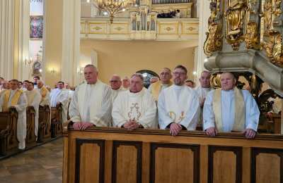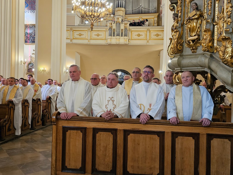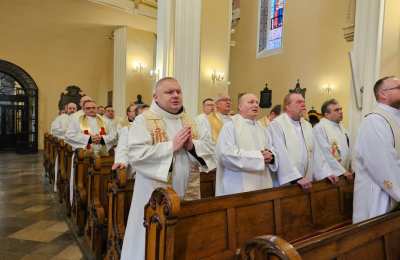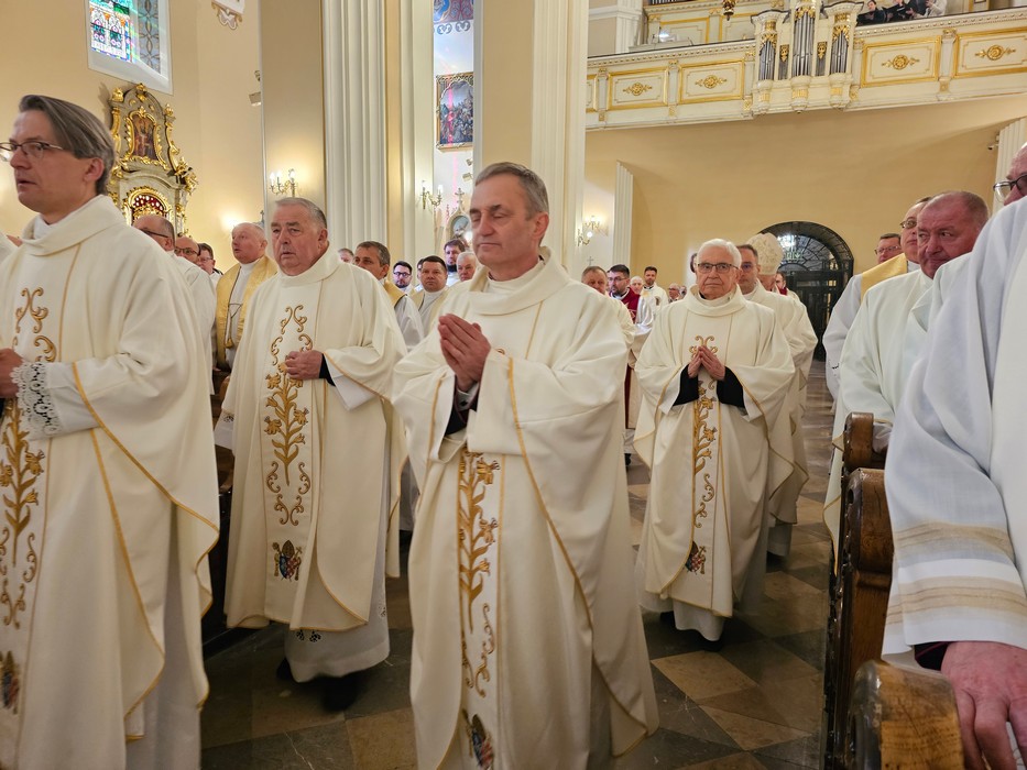 W homilii biskup kaliski podkreślał, że dzisiejszy dzień to czas dziękczynienia za dar kapłaństwa, ale także czas refleksji nad kapłańską posługą i czas modlitwy za kapłanów, aby byli wierni, gorliwi i oddani sprawom Królestwa Bożego. – Dziękuję za to, co każdy z was podejmuje w waszych parafiach, wspólnotach czy instytucjach, w których pracujecie. Dziękuję za to wszystko, bracia, co robimy razem. I dziękuję, że dzisiaj razem możemy się modlić i razem Pana Boga uwielbiać – powiedział celebrans.
