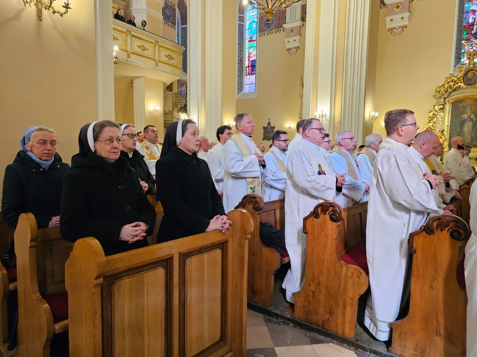 Mszę św. wraz z bp. Damianem Brylem koncelebrowali: bp Łukasz Buzun, pracownicy Kurii Diecezjalnej, księża dziekani oraz przybyli kapłani z diecezji kaliskiej.