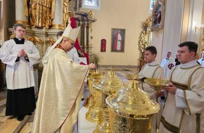 Niech dzisiejsze spotkanie, wspólna modlitwa, rozmowy pomogą nam bardziej kochać Pana Jezusa, Jego Kościół i ludzi, którzy zostali nam powierzeni. Niech pomogą odpowiedzialnie dbać o swoje powołanie i rozwój w nim – mówił biskup kaliski Damian Bryl, który przewodniczył w Katedrze św. Mikołaja w Kaliszu Mszy Krzyżma Świętego. Podczas Eucharystii odnowiono przyrzeczenia kapłańskie. W czasie liturgii reprezentanci Zakonu Rycerskiego Świętego Grobu w Jerozolimie przynieśli do ołtarza olej narodowy przywieziony z Ziemi Świętej.