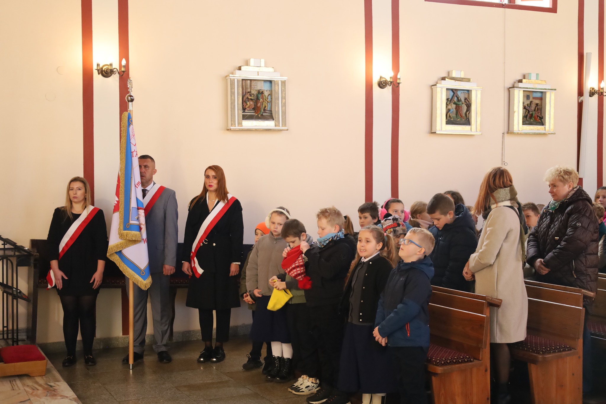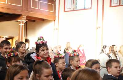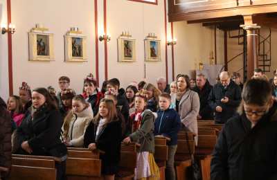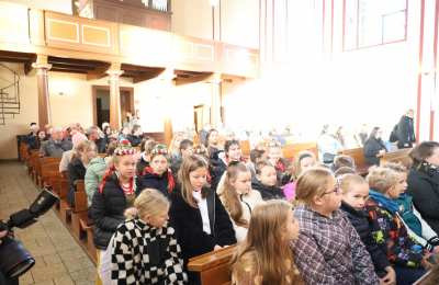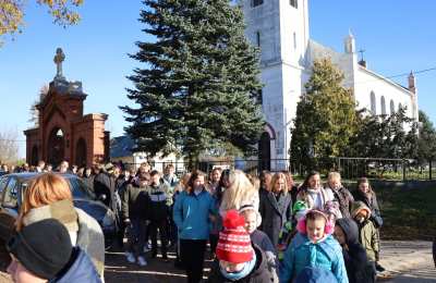 Wspólnota szkolna po zakończeniu Eucharystii udała się do sali OSP Roszkowice na dalsze świętowanie.