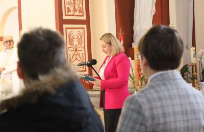 Na począrku Mszy św. głos zabrała dyrektor szkoły mgr Anna Noga: