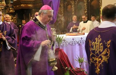 Dodał, że pełną odpowiedzią na słowo Boże jest czyn. - Starajmy się, by słyszane słowo Boże podczas liturgii słowa, rozważania męki Pańskiej, rekolekcji wielkopostnych, nabożeństw paschalnych, było wprowadzane w czyn. Byśmy byli, jak wasz Patron, ludźmi czynu – zachęcał hierarcha.