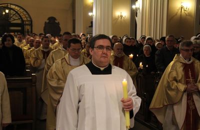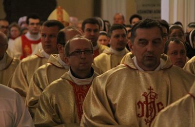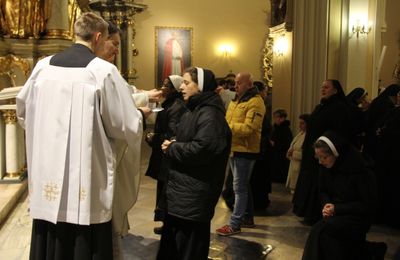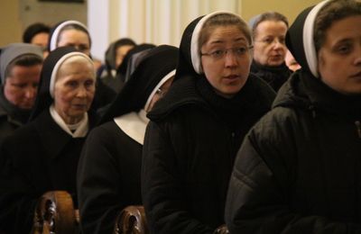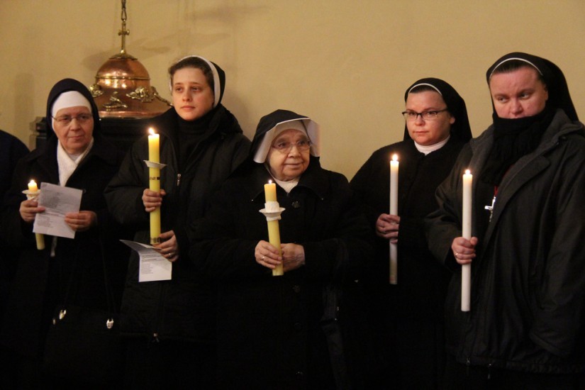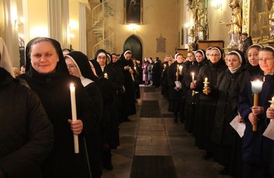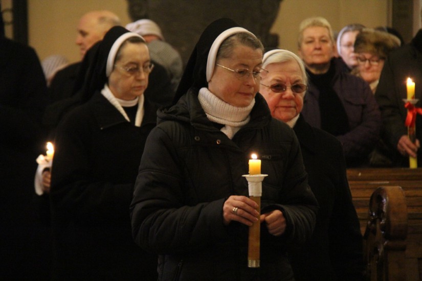 Na początku Mszy św. biskup poświęcił zapalone świece, z którymi siostry i kapłani procesyjnie przeszli do nawy głównej kaliskiej katedry.