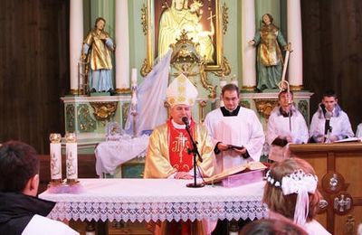 Modlitwie przewodniczył Biskup Kaliski Edward Janiak - sprawował Sumę odpustową i wygłosił Słowo Boże. Podczas Mszy świętej Ksiądz Biskup poświęcił także Sztandar dla Publicznej Szkoły Podstawowej w Chajewie, która tego dnia przyjęła Świętego Mikołaja za swego Patrona. Szkoła ta prowadzona jest przez Stowarzyszenie Przyjaciół Szkół Katolickich.w Częstochowie.