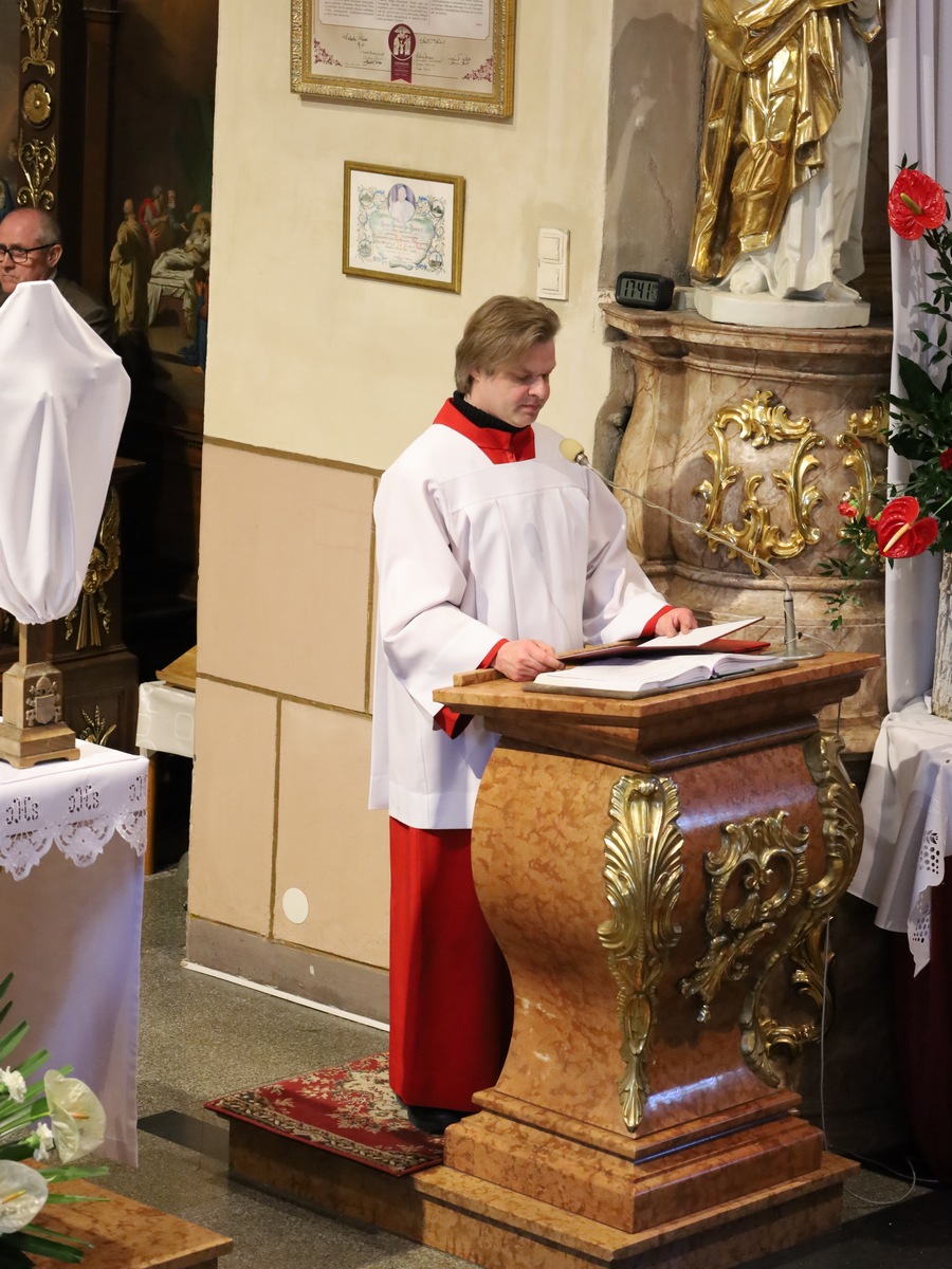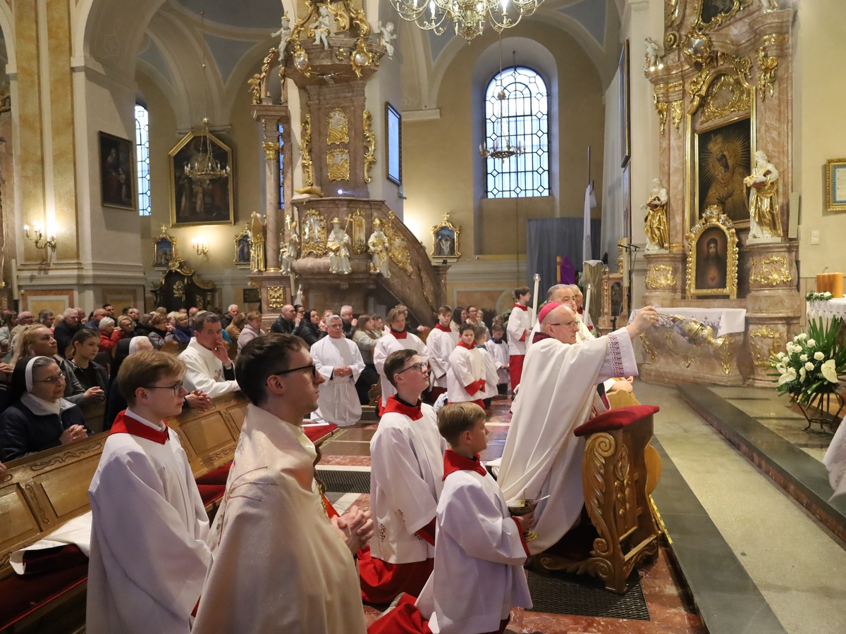 W homilii biskup pomocniczy diecezji kaliskiej nawiązując do obmycia nóg Apostołom przez Jezusa w Wieczerniku wskazywał, że człowiek jest powołany do takiej miłości służebnej wobec swoich bliźnich. – Te słowa i postawy są po to, abyśmy nie stracili prawdziwej miłości, nie odrzucili Boga i bliźniego. Te słowa są lekarstwem na naszą pychę. To jest nauka wypływająca z dzisiejszej Ewangelii i Eucharystii przeżywanej, w której doświadczamy Chrystusa sługi – zaznaczył kaznodzieja.