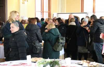 Po Mszy św. miało miejsce spotkanie przy kawie i cieście, nim jednak przyszła pora na rozmowy kuluarowe, wybrzmiały jeszcze życzenia, które katecheci złożyli na ręce biskupa kaliskiego wraz z drobnym upominkiem: