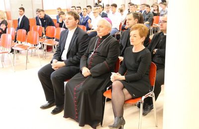 Uczniowie Zespołu Szkół Technicznych Diecezji Kaliskiej im. św. Józefa w Kaliszu, w obecności biskupa kaliskiego Edwarda Janiaka...