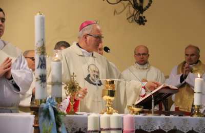 Dziękował kapłanom i osobom świeckim skupionym w Grupach Modlitwy Ojca Pio. – Bardzo dziękuję za to, że jesteście w grupach, że się modlicie, wszystkim kapłanom, którzy są zaangażowani i przyjechali razem z wami, ojcom, którzy otwierają tutaj swoje bramy klasztoru i kościoła po to, żebyśmy mogli się wspólnie spotkać i przeżyć Eucharystię. Niech radość nasza będzie wielka, bo radość jest zawsze w Panu – stwierdził bp Buzun.