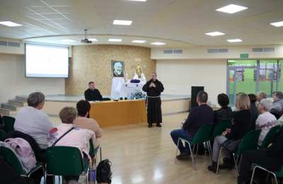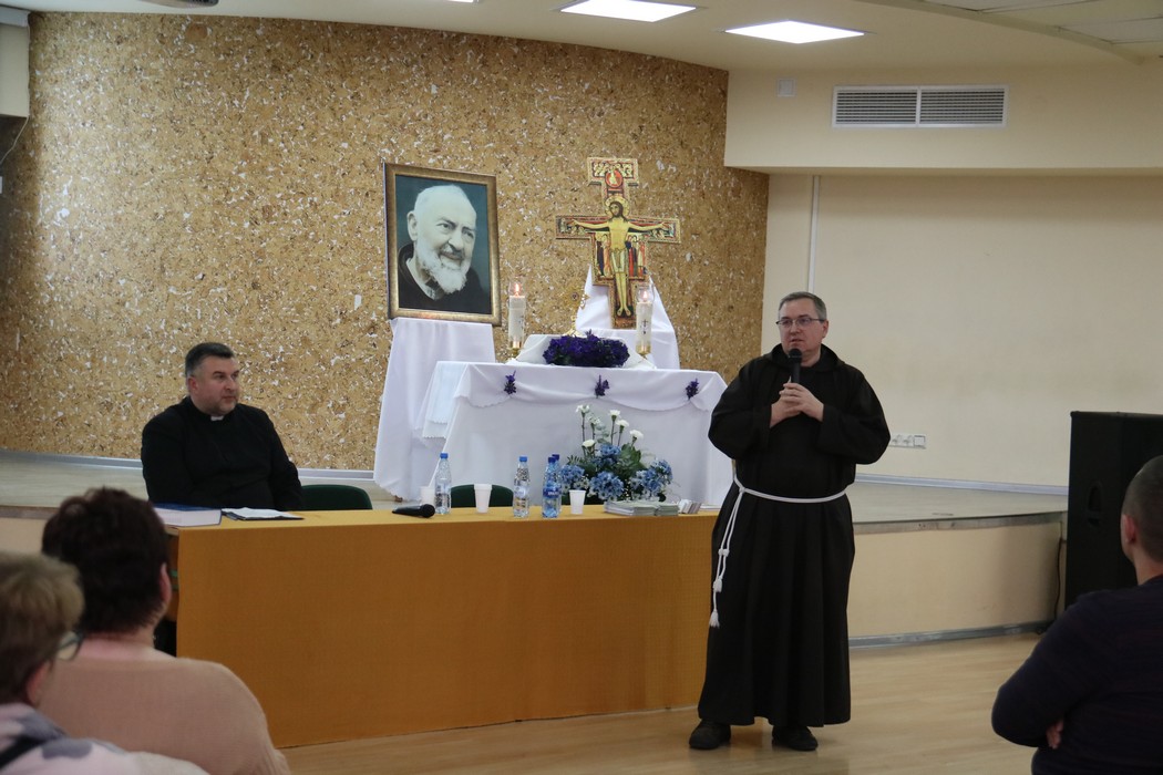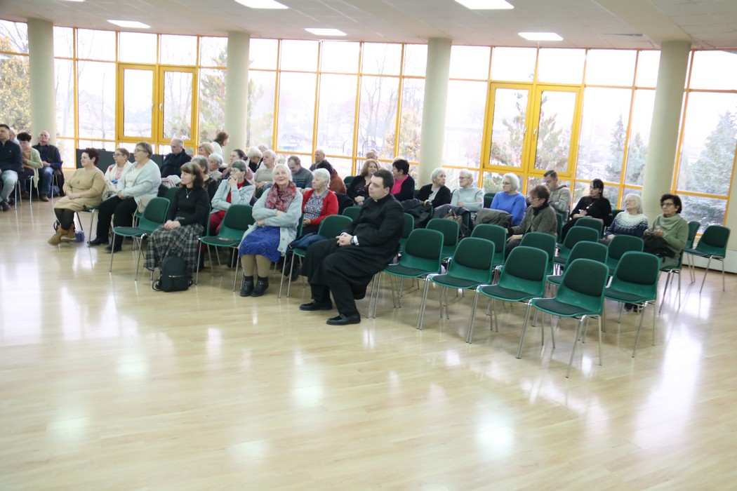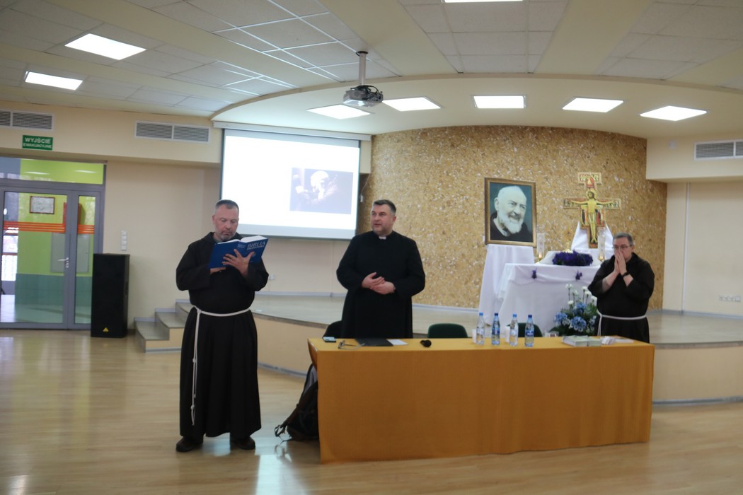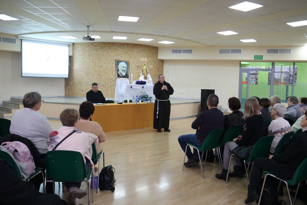 Po Mszy św. w Szkole Podstawowej im. św. Jana Pawła II wygłoszono dwie konferencje. Br. Jacek Waligóra OFMCap, zastępca dyrektora Dzieła Pomocy Ojca Pio w Krakowie wygłosił wykład nt. „Dzieło pomocy posługą samarytańską”, a br. Maciej Zinkiewicz, redaktor naczelny Głosu Ojca Pio mówił o posłudze samarytańskiej ojca Pio. Spotkanie zakończono Koronką do Miłosierdzia Bożego.
