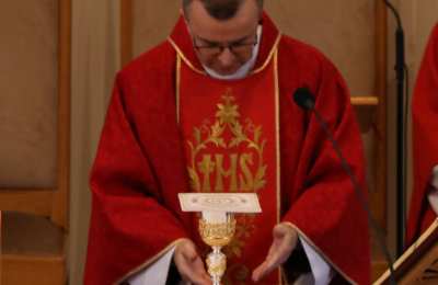 Wraz z biskupem kaliskim Damianem Brylem Mszę św. koncelebrowali: ks. prał. Sławomir Kęszka, asystent kościelny Akcji Katolickiej w diecezji kaliskiej i ks. kan. Krzysztof Guziałek, proboszcz parafii św. Floriana w Pleszewie.