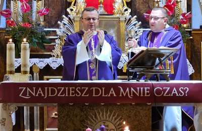 Odwołując się do dzisiejszego psalmu, w którym śpiewaliśmy: „Idźmy z radością na spotkanie Pana” akcentował, że zawsze idziemy razem, we wspólnocie. - Bardzo dziękuję, że dzisiaj możemy być razem. Dziękuję za zaproszenie, że mogę razem z wami modlić się. Bardzo mi zależy, żebyśmy wszyscy mieli doświadczenie, że jesteśmy razem w Kościele i że razem idziemy do Pana Boga i że w Kościele każdy jest ważny, każdy ma swoje miejsce – zaznaczył kaznodzieja.