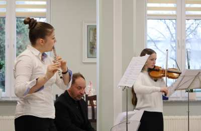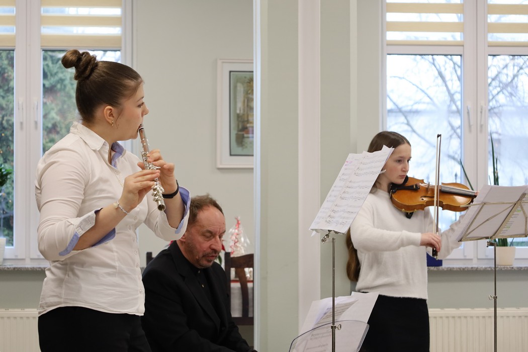 Po oficjalnym przywitaniu uczestnicy spotkania mieli okazję wysłuchać wyjątkowego występu artystycznego. Przed zebranymi zaprezentowali się Michalina Miszkieło (flet), Lidia Nabiała (skrzypce) pod kierunkiem dra Andrzeja Henryka Bączyka.