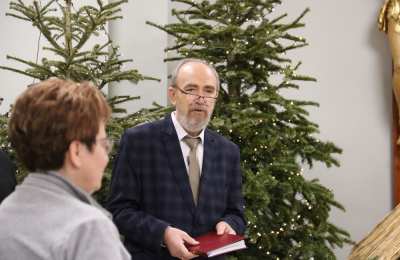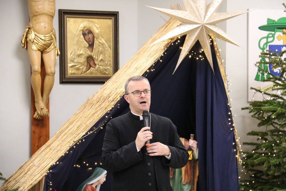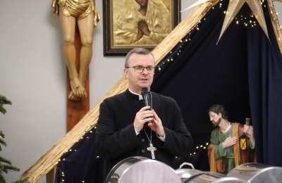 W homilii biskup Damian przywitał wszystkich, którzy mimo bardzo dużego mrozu przybyli na spotkanie świąteczne: