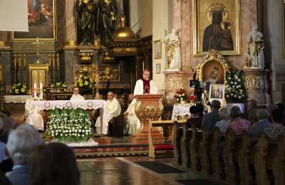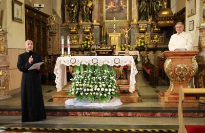 W imieniu o. Tadeusza Rydzyka słowo do wiernych skierował o. Grzegorz Woś, który wskazał, że inicjatorem pierwszoczwartkowych spotkań transmitowanych przez Radio Maryja i Telewizję Trwam był pierwszy biskup kaliski Stanisław Napierała. Dodał, że podczas pierwszego spotkania 3 czerwca 2004 r. do sanktuarium wprowadzono relikwie św. Joanny Beretta Molla.