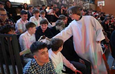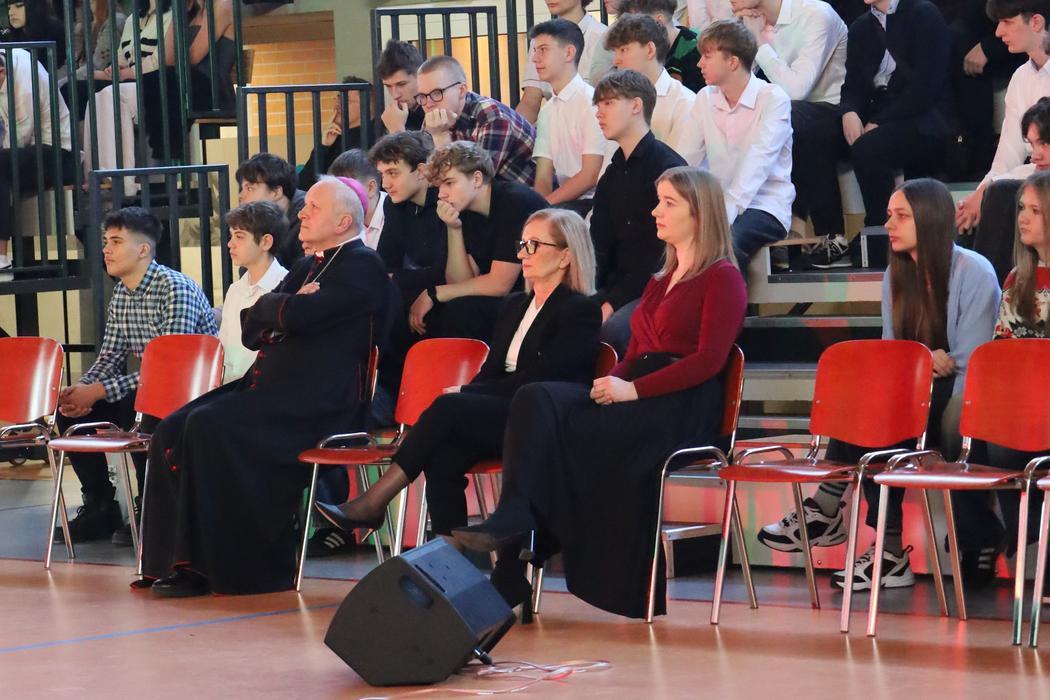 Po przedstawieniu ks. dr Adam Kraska, dyrektor Technikum im. św. Józefa w Kaliszu odczytał fragment Ewangelii według św. Łukasza, mówiący o Narodzeniu Pana Jezusa.