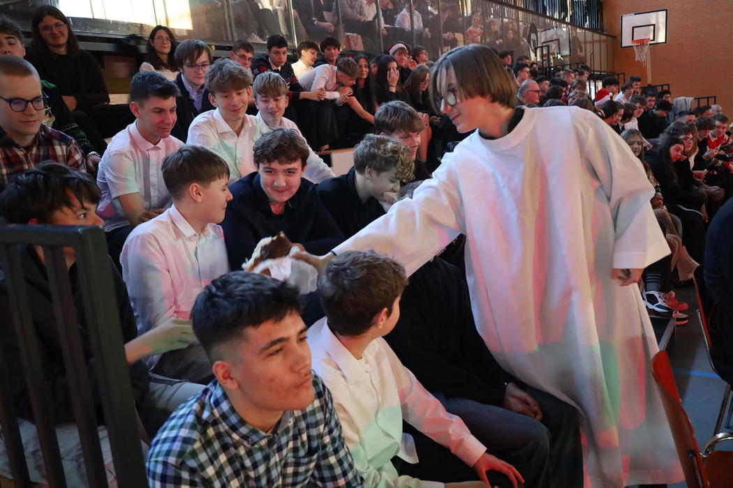 Po części oficjalnej wychowawcy wraz ze swymi uczniami udali się do sal lekcyjnych, aby tam podzielić się opłatkiem i dalej kontynuować świętowanie.