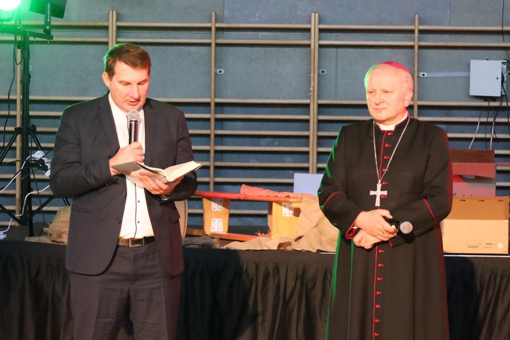 Na początku świętowania na ręce bpa Łukasza zostało przekazane Betlejemskie Światło Pokoju. Następnie młodzież wystawiła okolicznościowe „Jasełka”. Scenariusz i reżyserię przygotował ks. Przemysław Kapała: